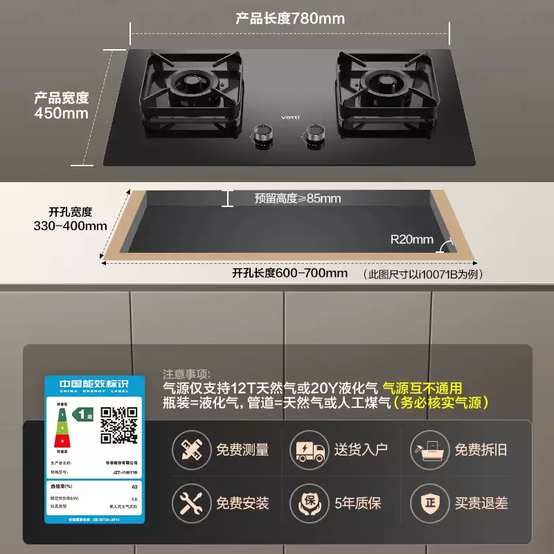 华帝双灶家用i10071B一级节能5.2KW灶具煤气灶天然气灶液化气灶
