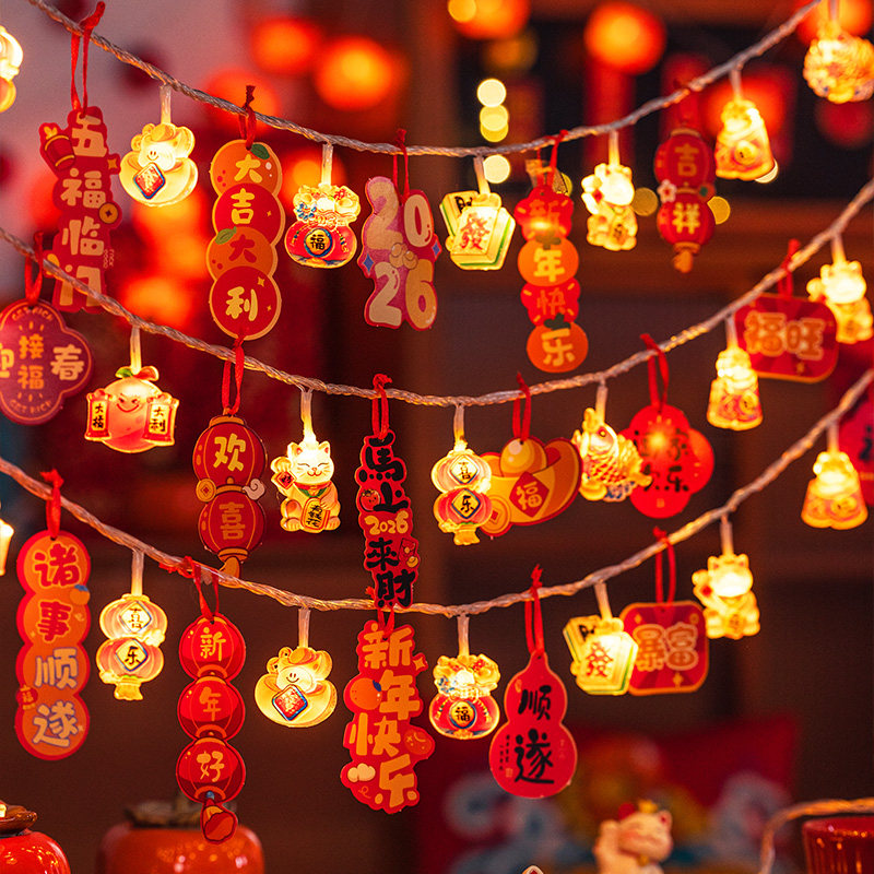 新年装饰灯串福字彩灯氛围灯饰春节过年气氛灯新款阳台闪灯小串灯