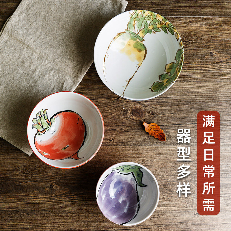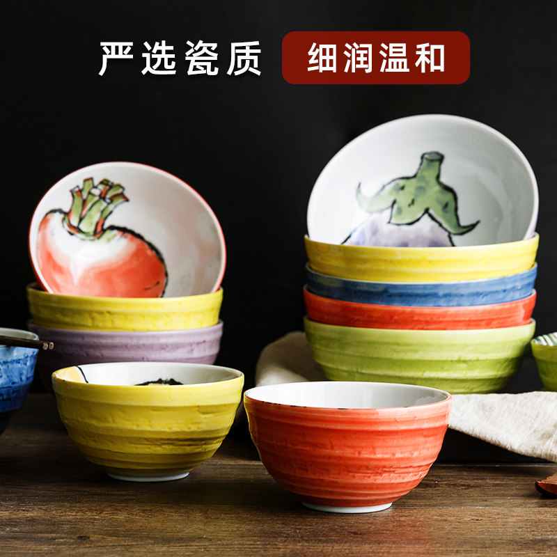 【自营】西洞窑蔬菜碗日本进口陶瓷碗家用吃饭米饭碗日式圆碗面碗
