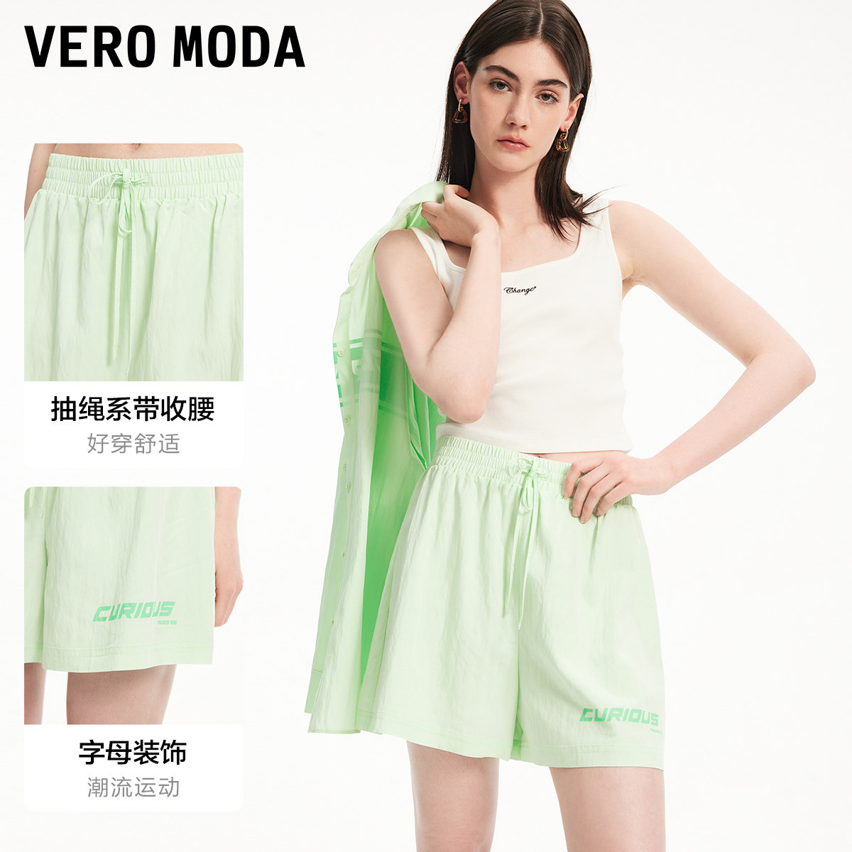 Vero Moda奥莱短裤女夏季新款高街潮流休闲宽松字母直筒百搭裤子