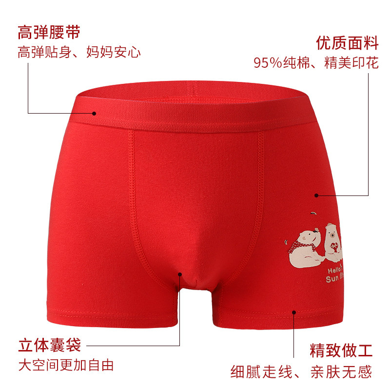 男童本命年红内裤儿童属马年纯棉12岁中大童小男孩四角裤红色短裤