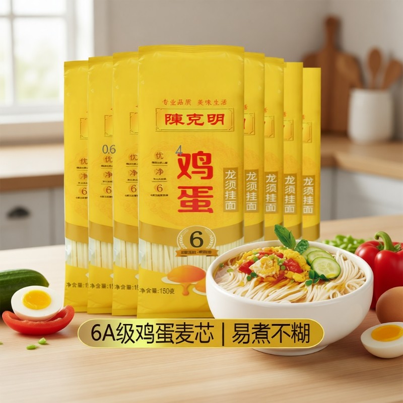 陈克明面条挂面鸡蛋龙须面细150g*10袋早餐速食面条方便小包拌面