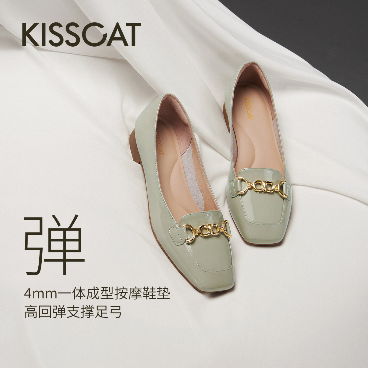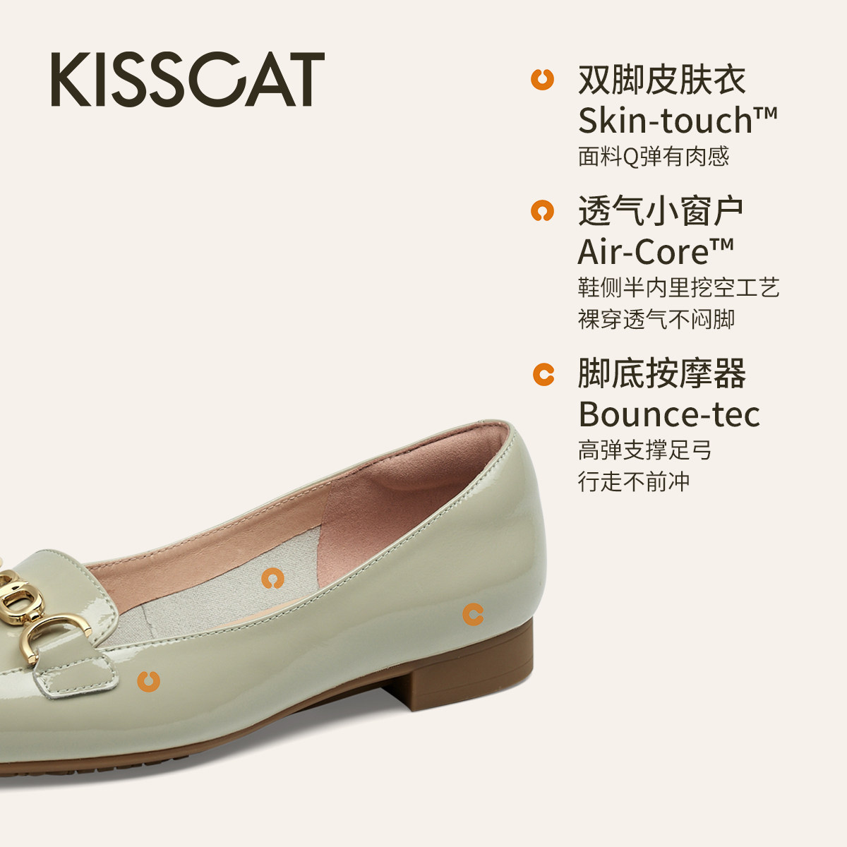 KISSCAT接吻猫[好彩系列]乐福鞋女春季平底豆豆鞋真皮通勤单鞋女