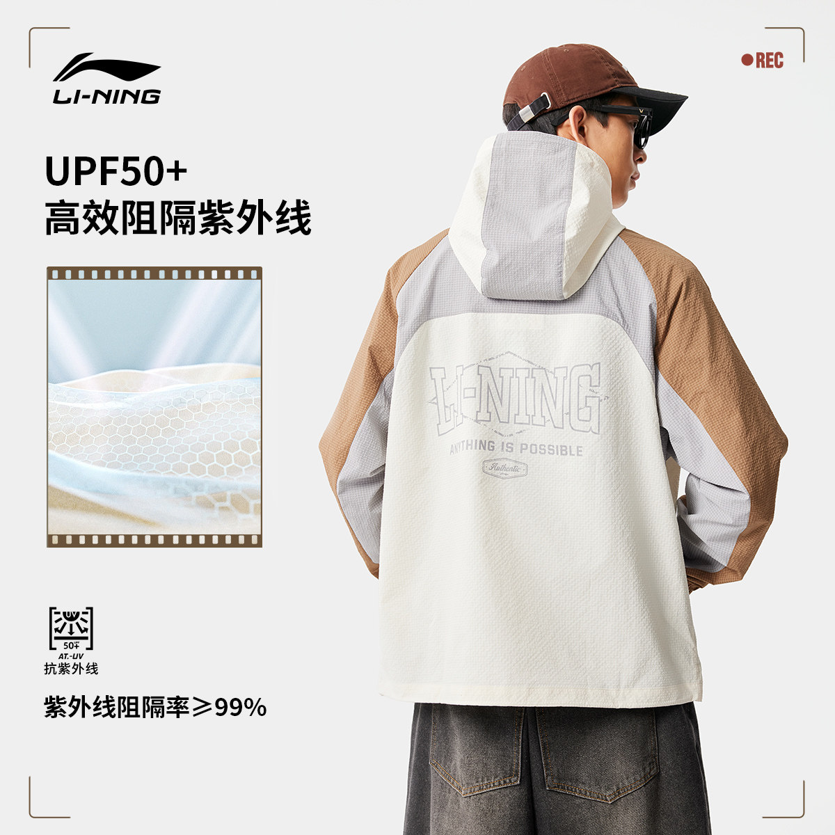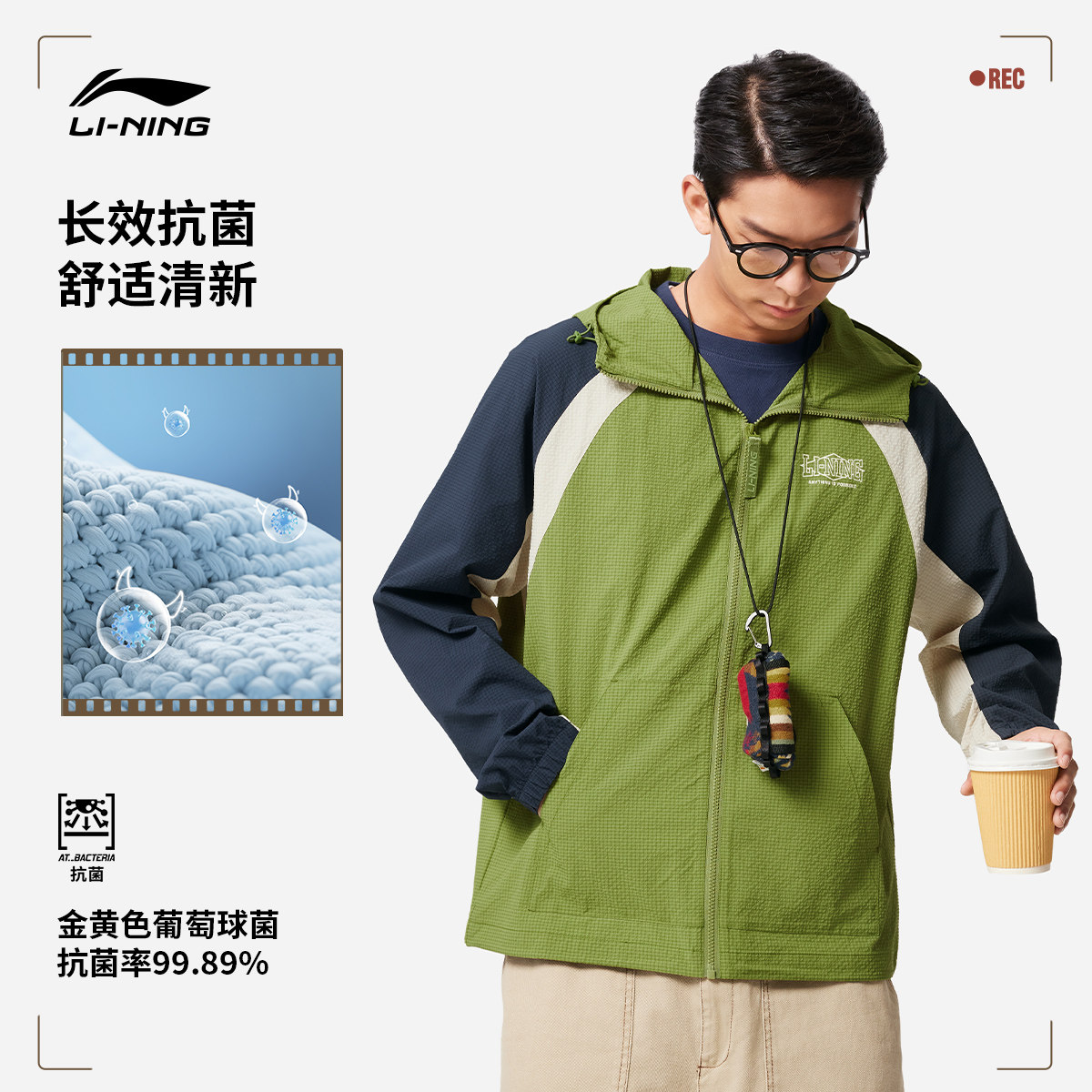 李宁连帽外套春秋开衫新款男女同款夹克运动风衣防晒服抗菌上衣