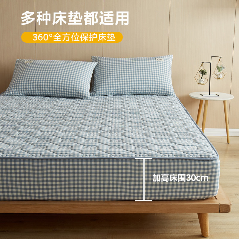 纯棉夹棉床笠新款四季通用全棉水洗棉床罩蓝色格子床垫套隔脏床包