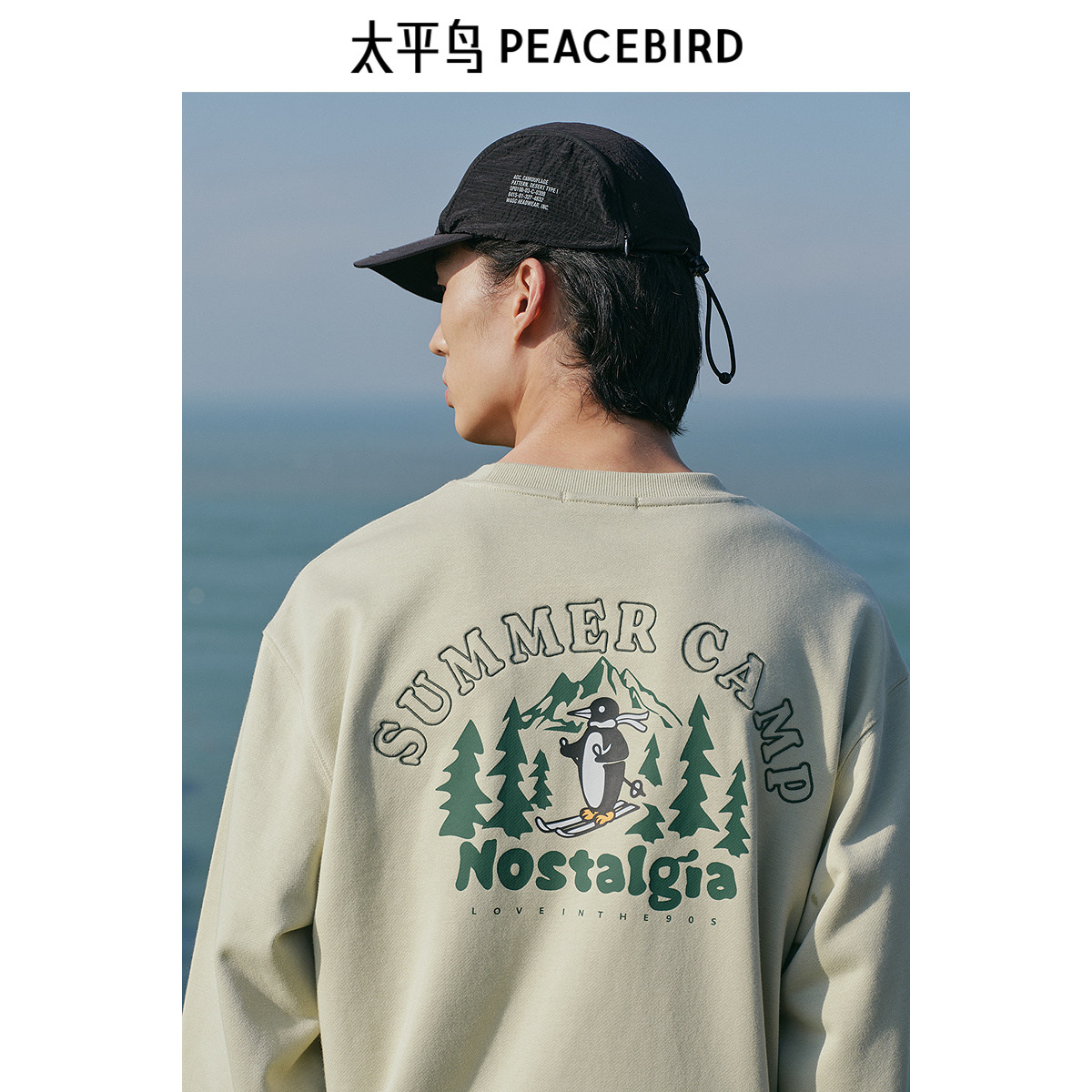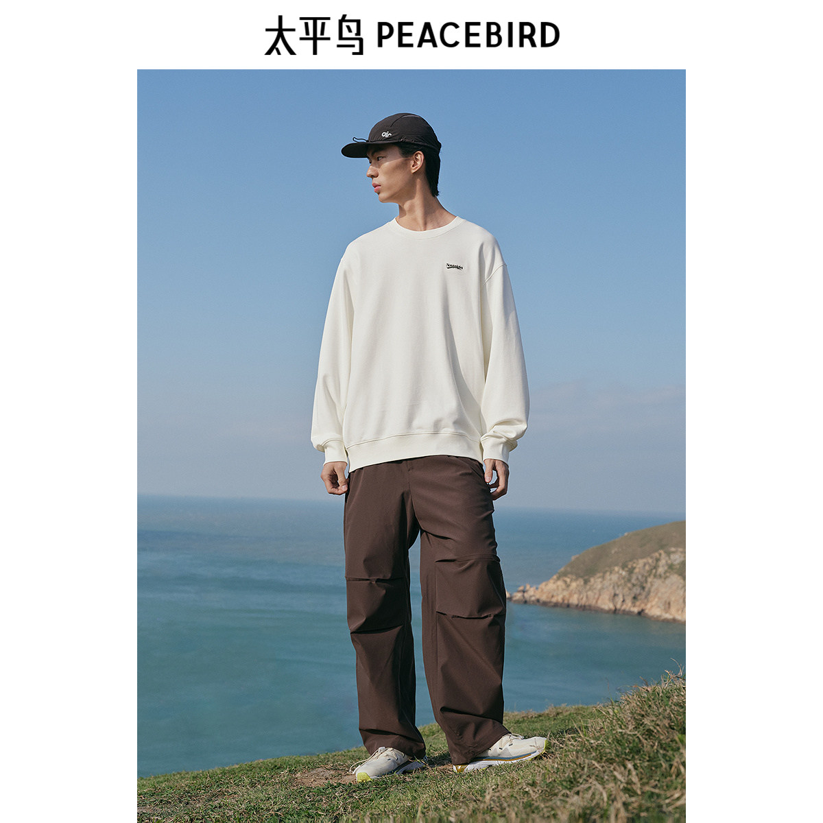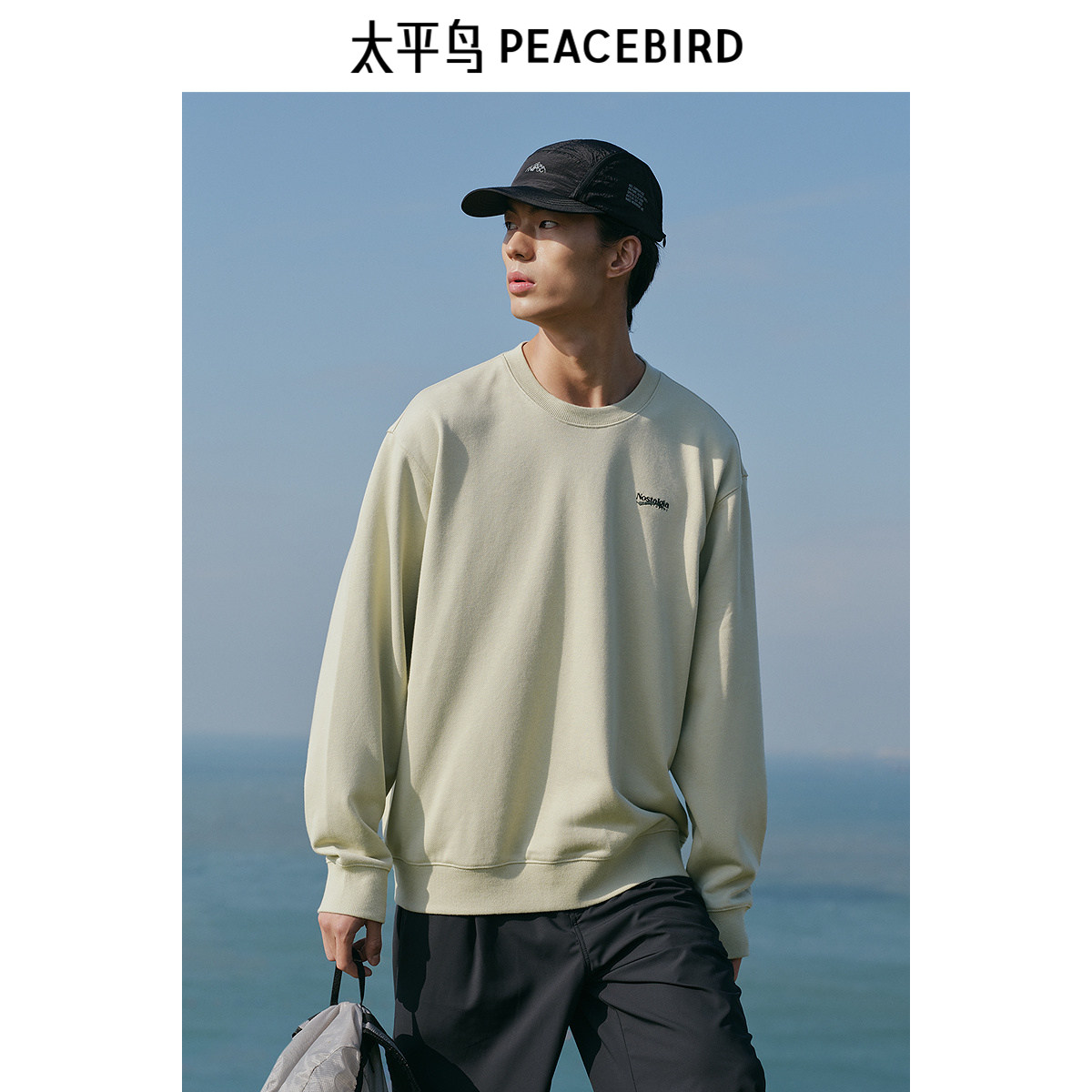 太平鸟男装 休闲卫衣2025春季新款圆领美式卫衣宽松刺绣男士卫衣