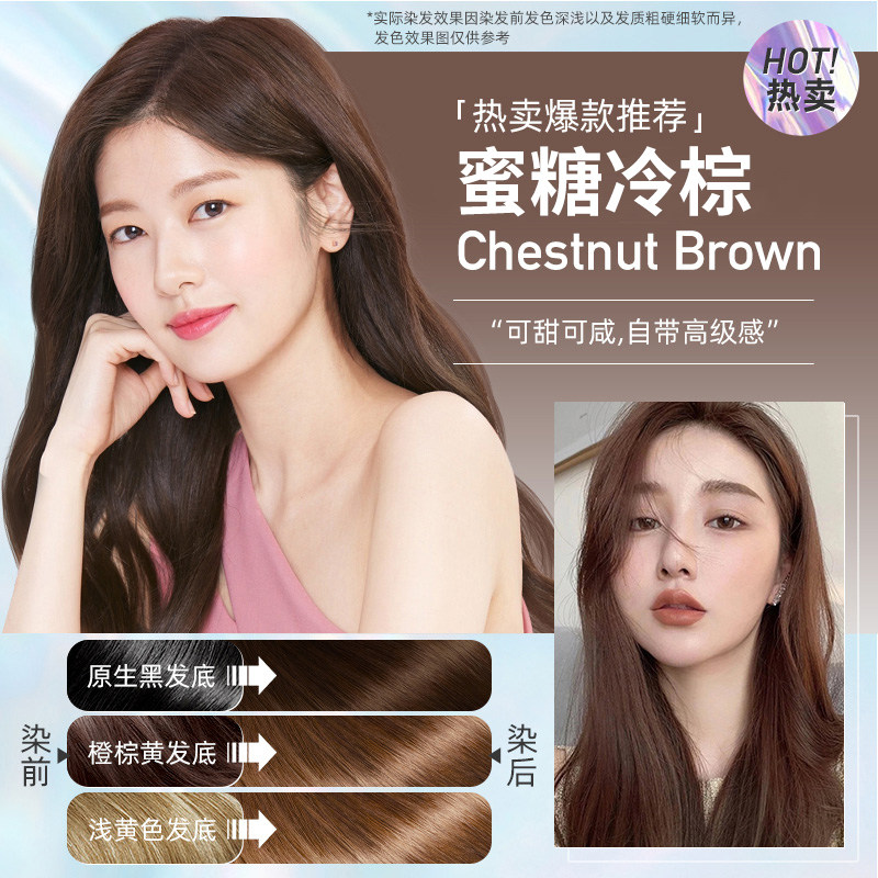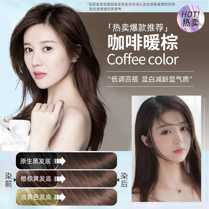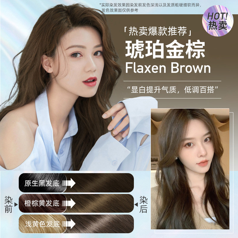 韩金靓正品染发剂黑茶色棕植物泡泡刺激无纯自己在家染发膏盖白女