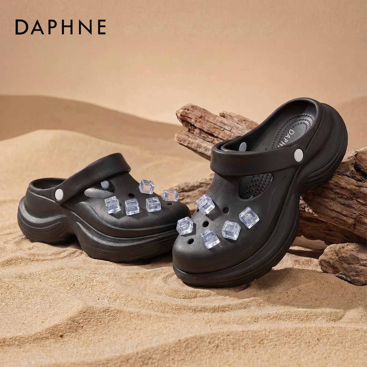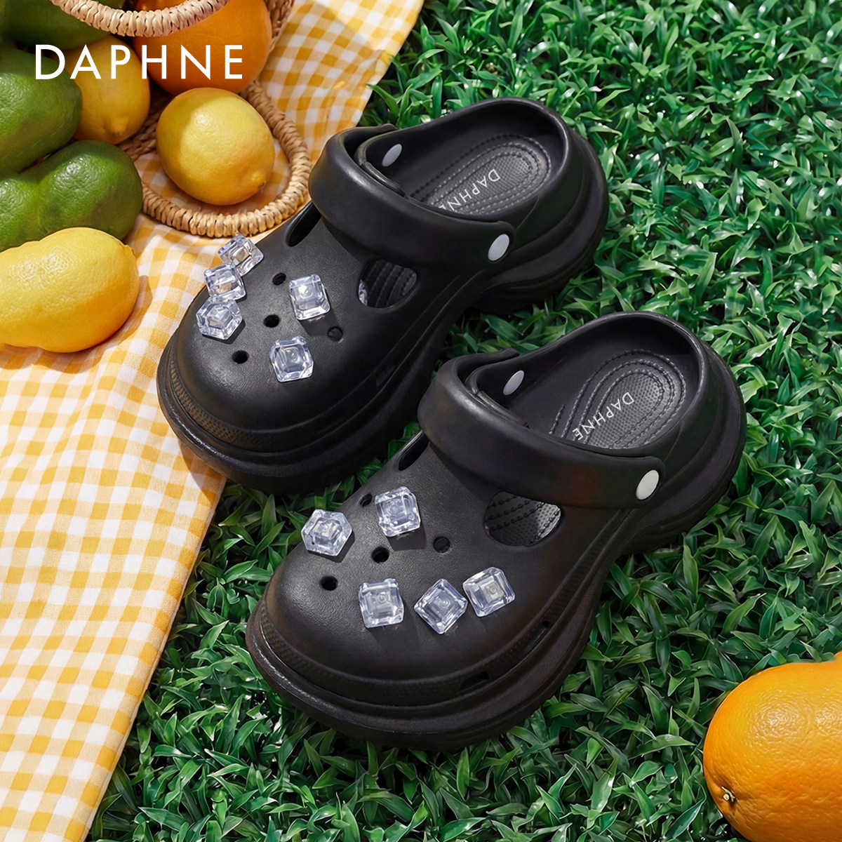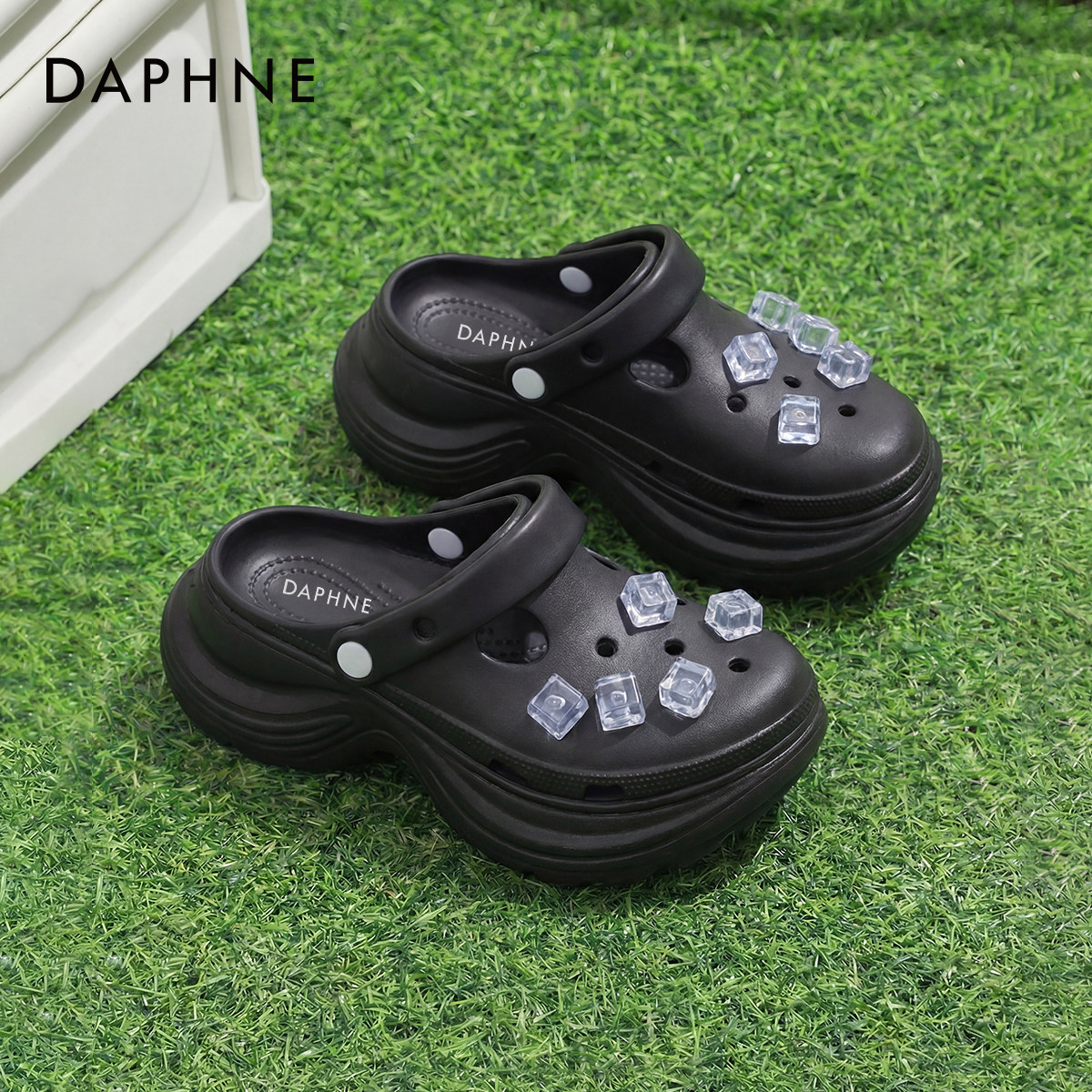 达芙妮洞洞鞋女2026新款春夏季黑色厚底凉鞋包头半拖凉鞋增高女鞋