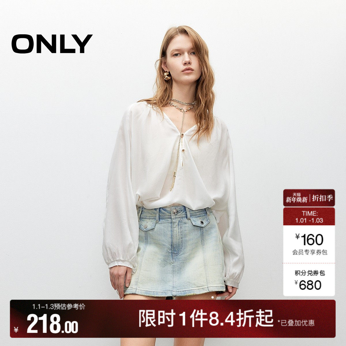 ONLY2025夏季新款复古磨白水洗拼接剪裁A字高腰裙裤短裤牛仔裤女