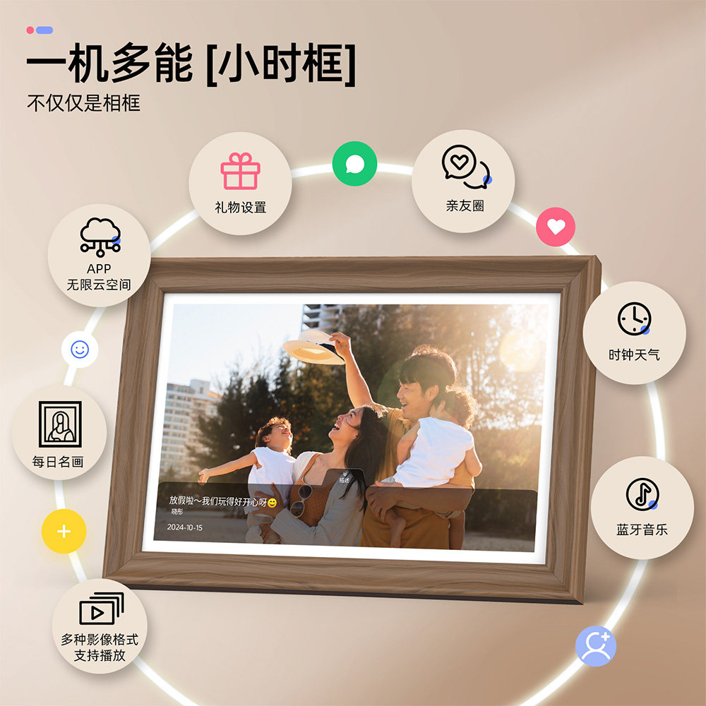 霓时数码相框木制16英寸64G触屏智能电子相册 高清云相框照片视频播放礼物礼品摆件摆台显示屏