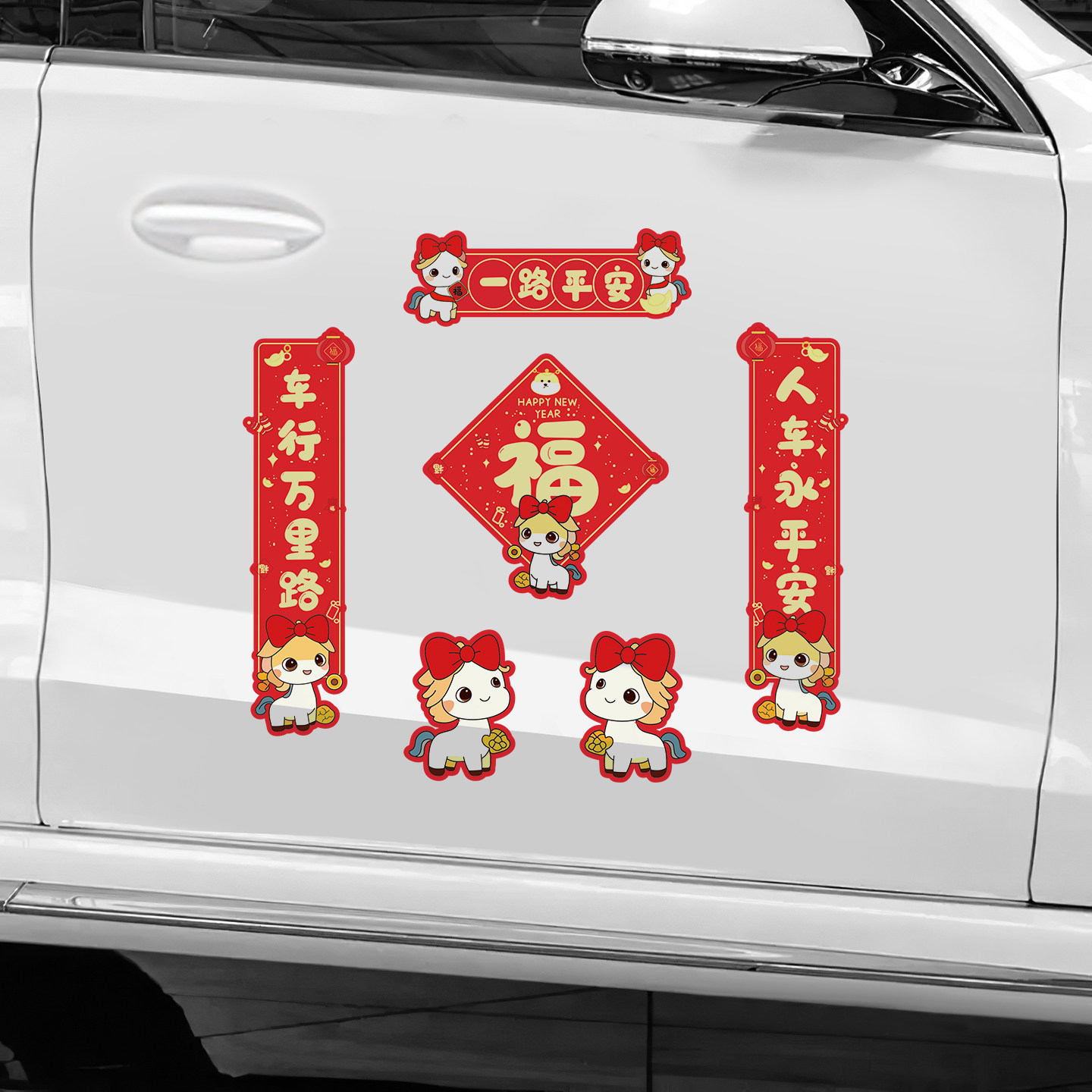 2026新年汽车对联车贴磁吸迷你创意文字马年春联电动车身油箱盖贴