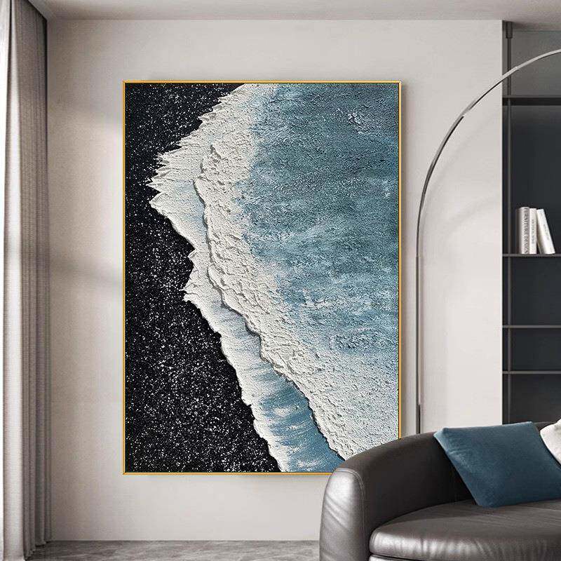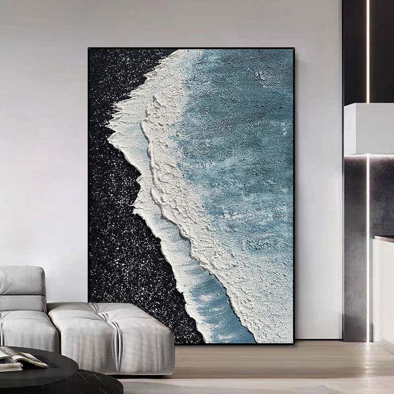 现代简约手绘油画立体厚肌理抽象海浪玄关挂画客厅沙发背后装饰画