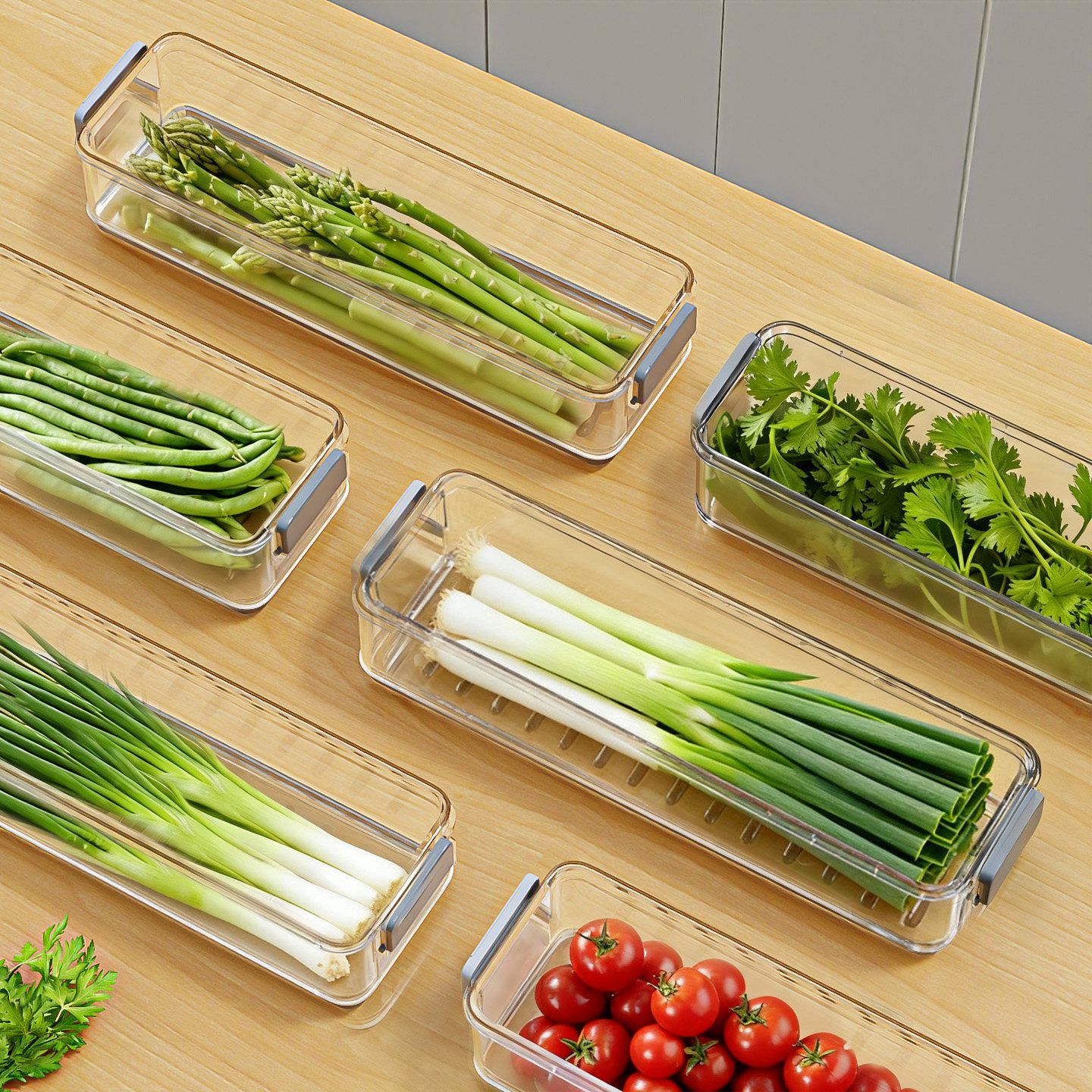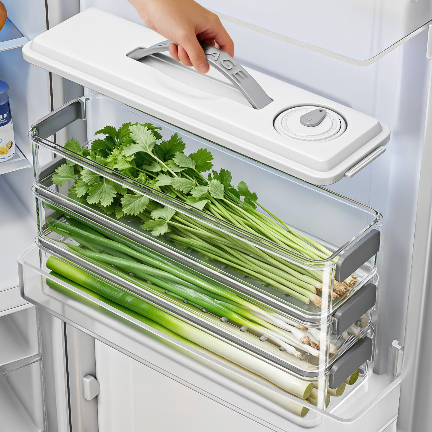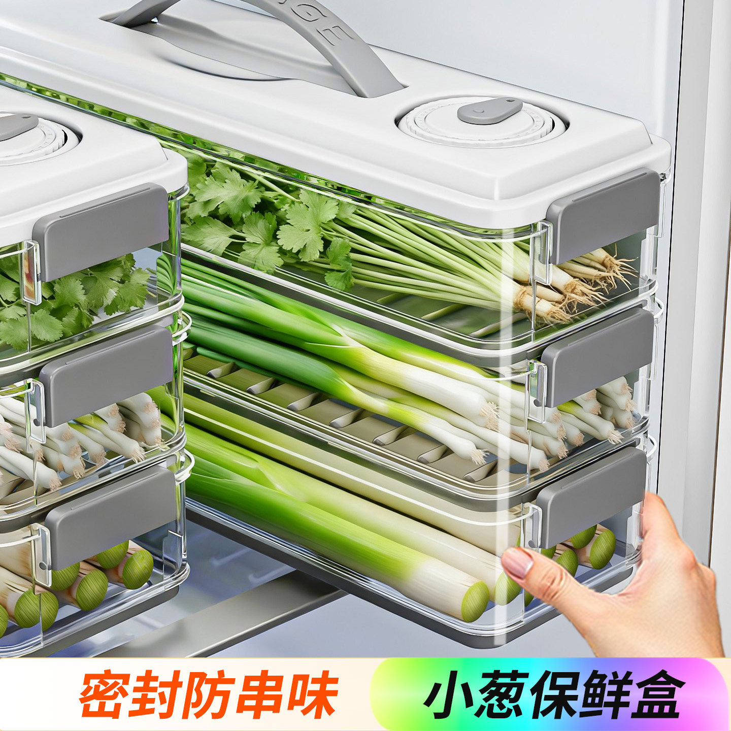 保鲜盒食品级大葱香菜芫荽整根姜蒜挂面条鸡蛋收纳整理盒冰箱专用