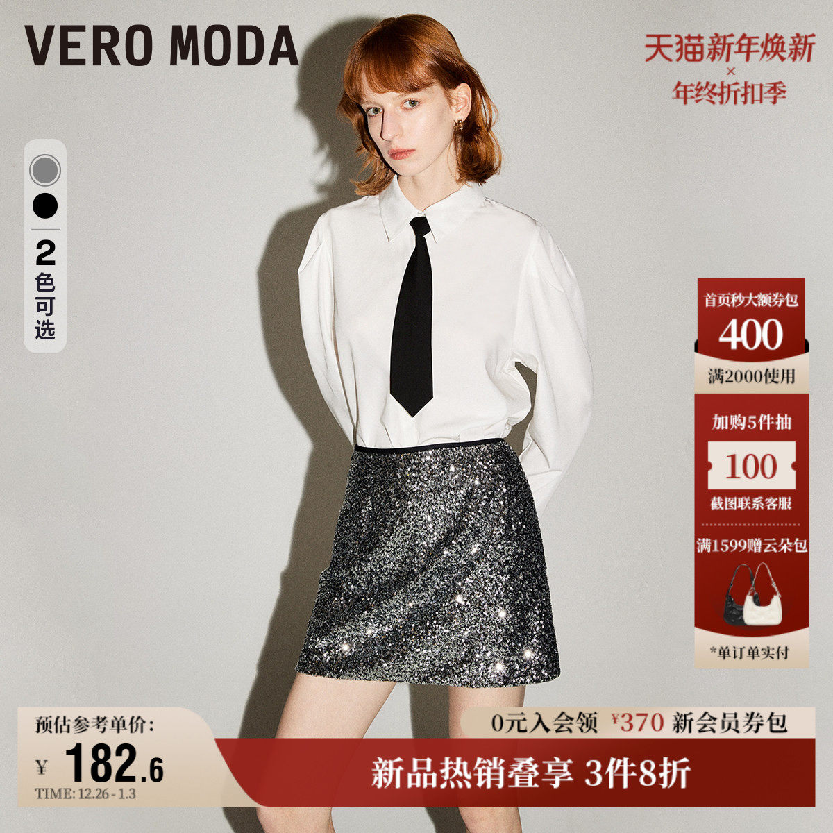 Vero Moda奥莱半身裙2025秋季新款时髦约会A字亮片裙短裙华丽优雅