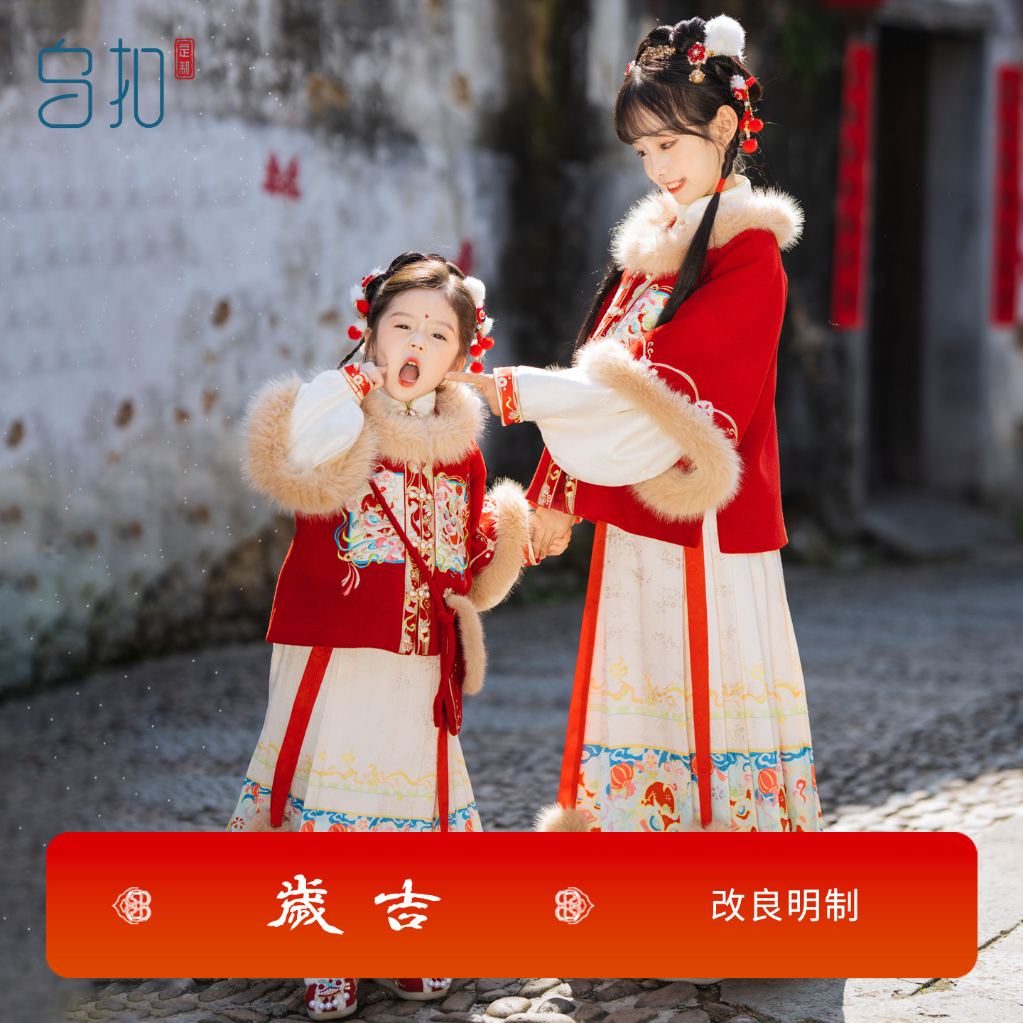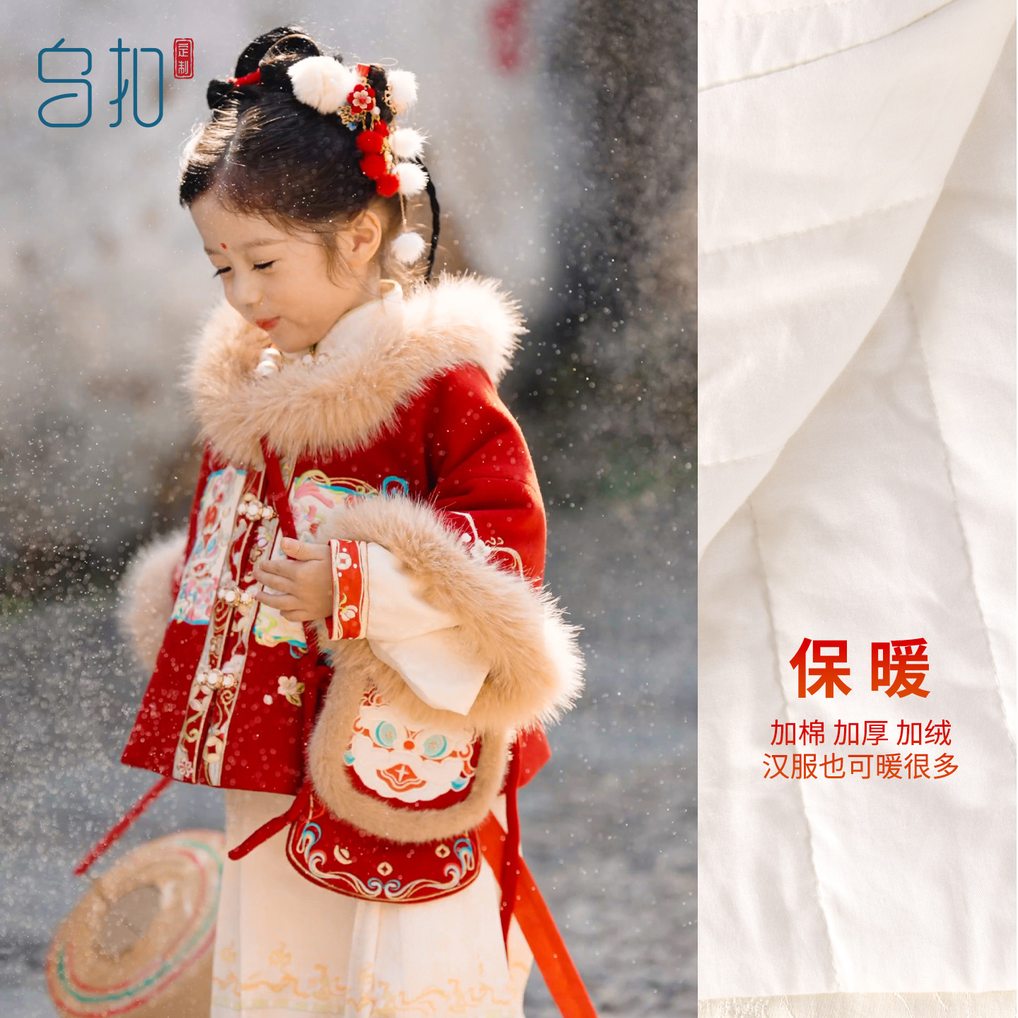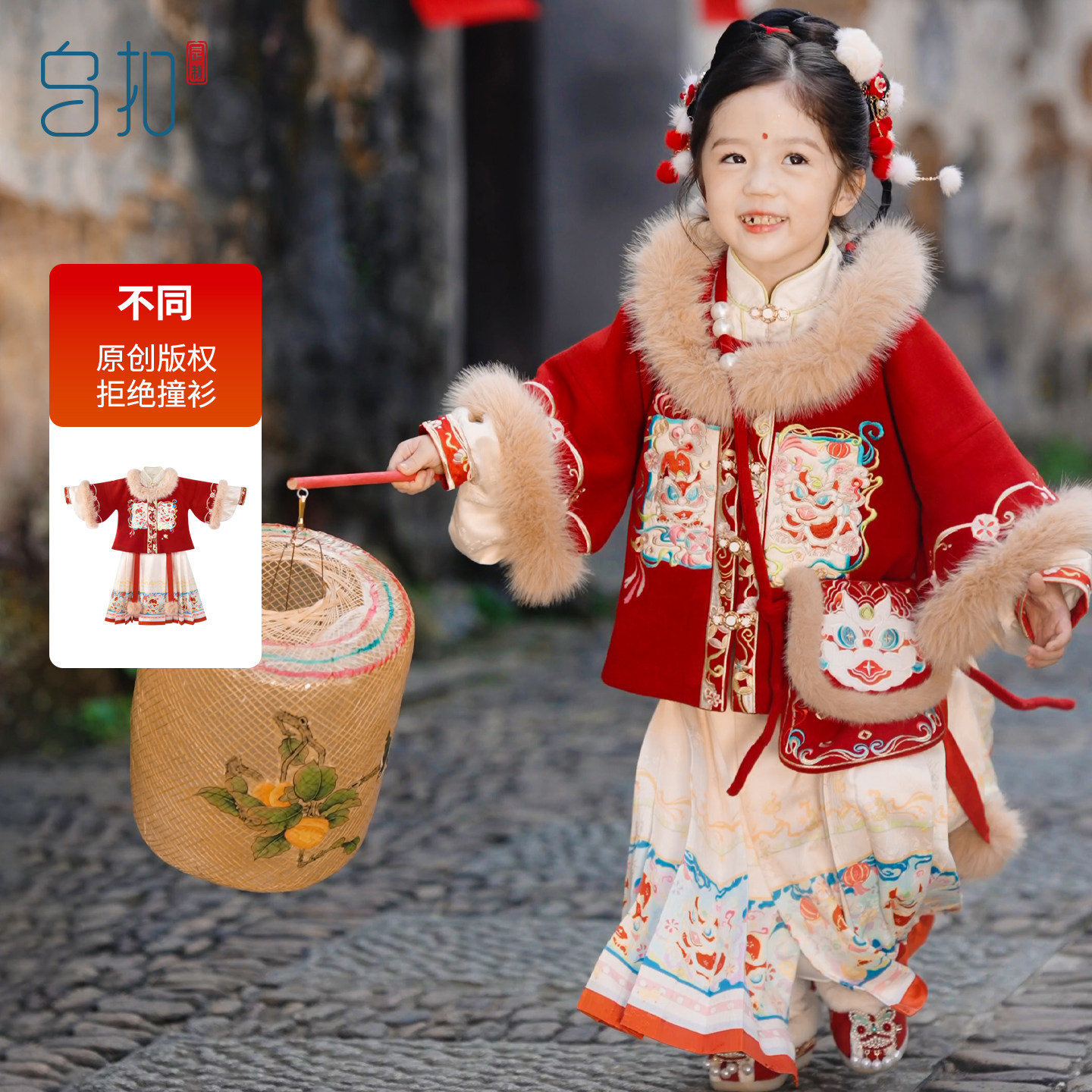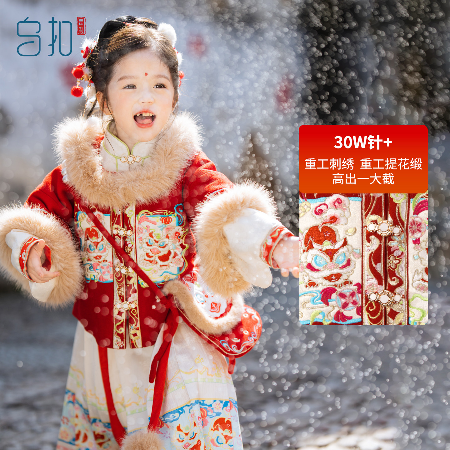 乌扣.岁吉 女童汉服明制拜年服儿童中国风冬季加厚保暖马面裙套装