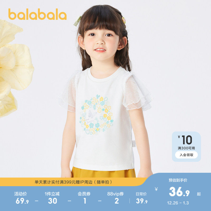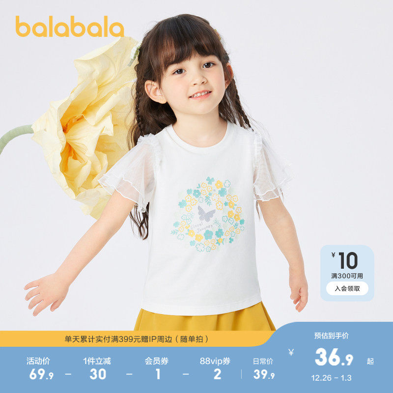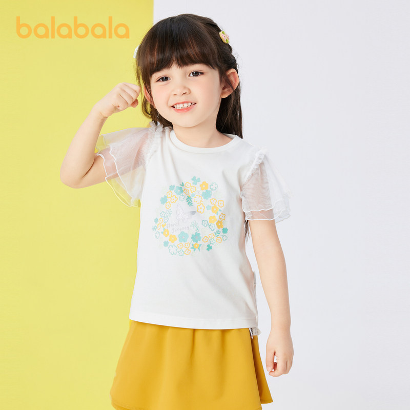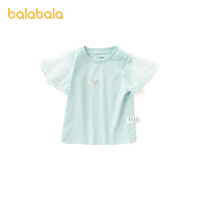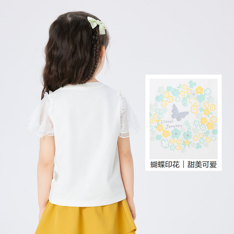 巴拉巴拉女童短袖T恤夏儿童小童网纱荷叶边