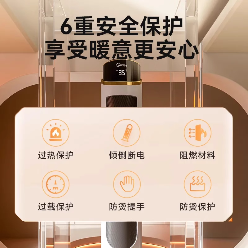 美的取暖器家用浴室防水电暖气婴儿洗澡节能欧式快热炉2025年新款