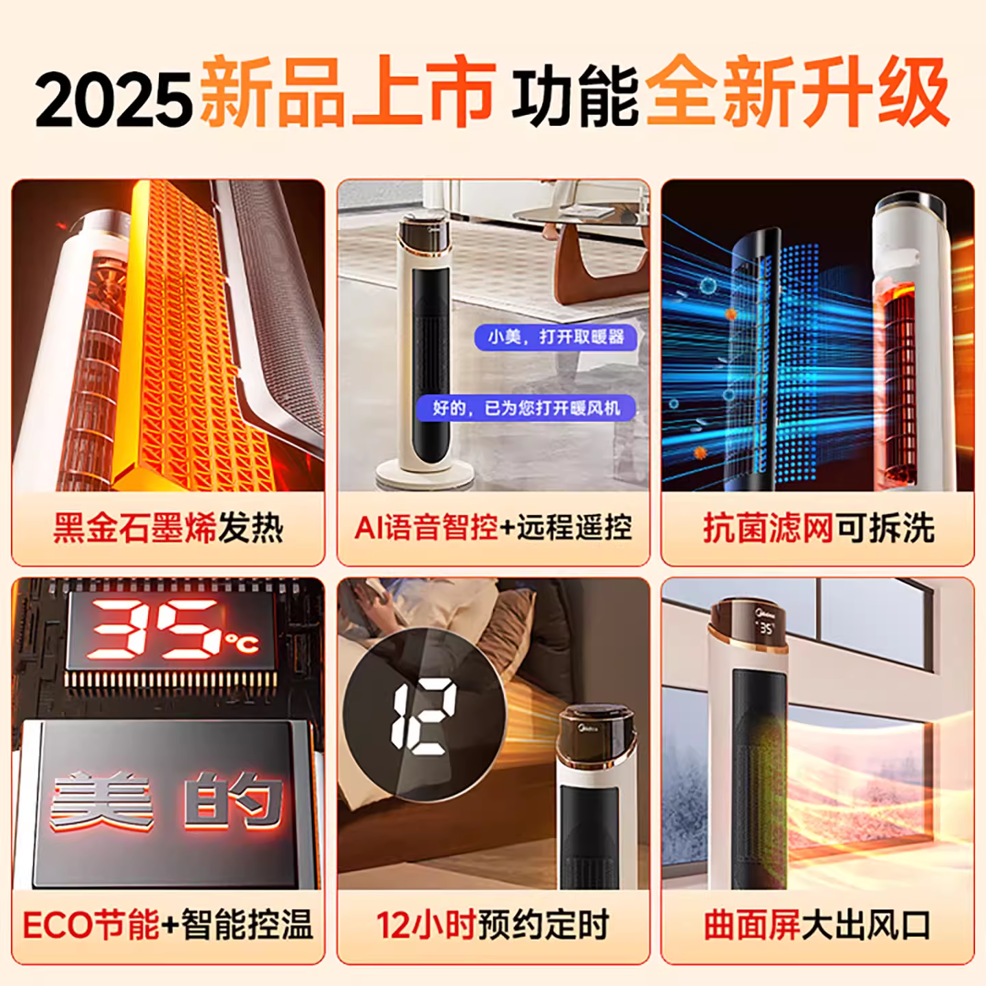 美的取暖器家用节能暖风机冬季小太阳电暖器2025新款石墨烯省电