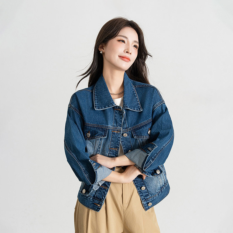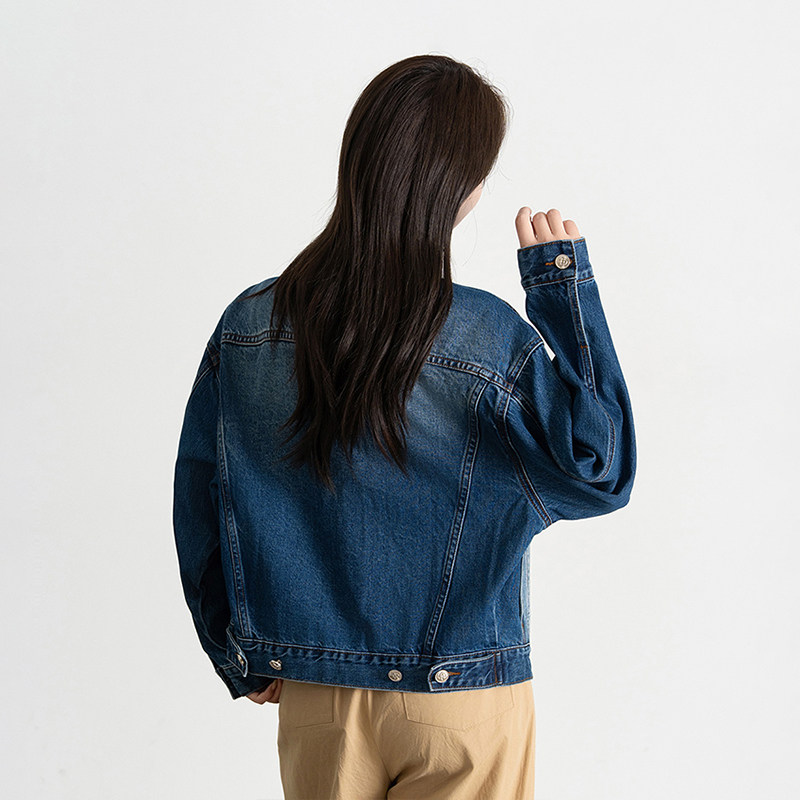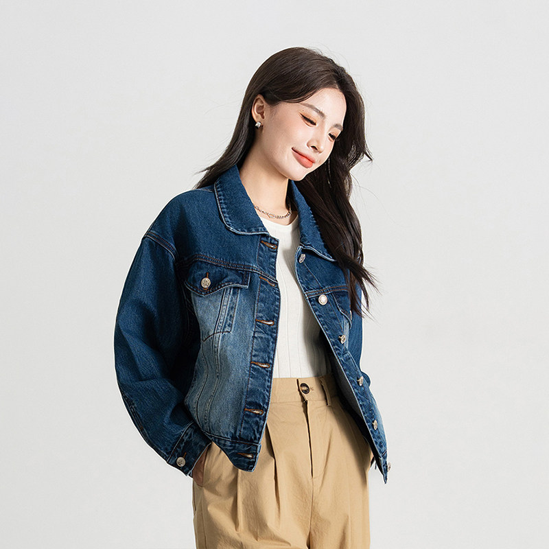 热风女士复古磨白街头港风秋季牛仔外套时尚百搭休闲纯棉质感夹克