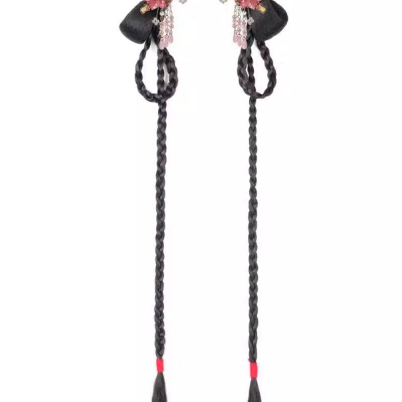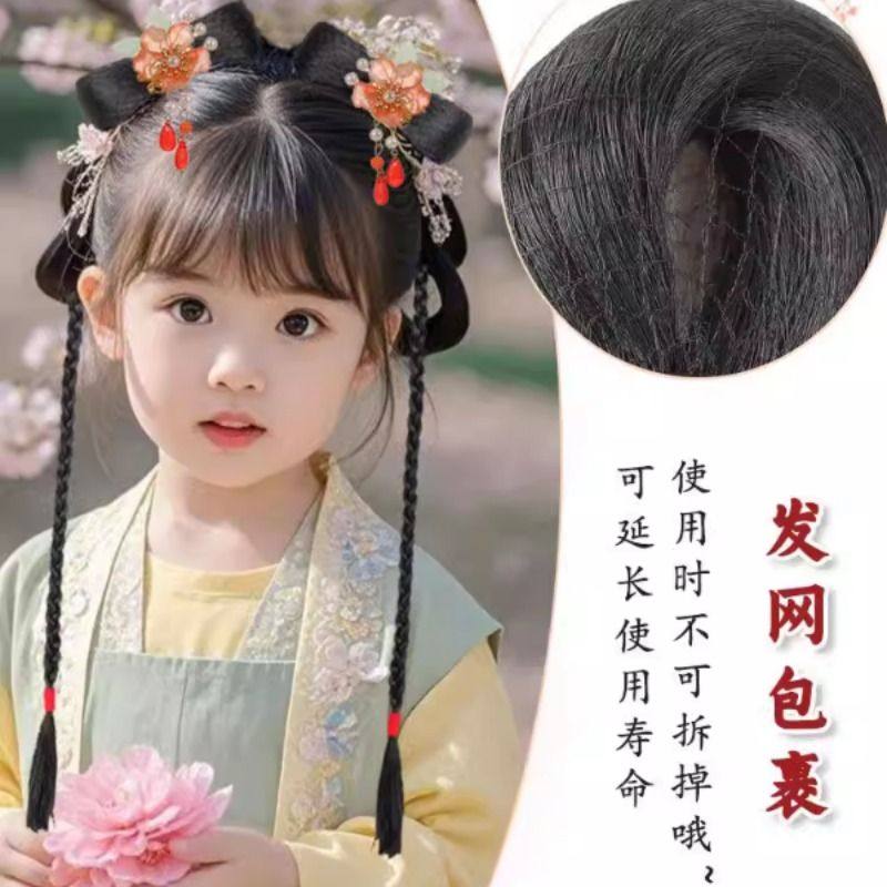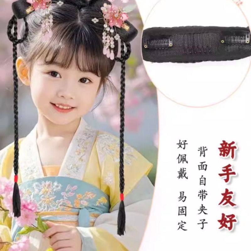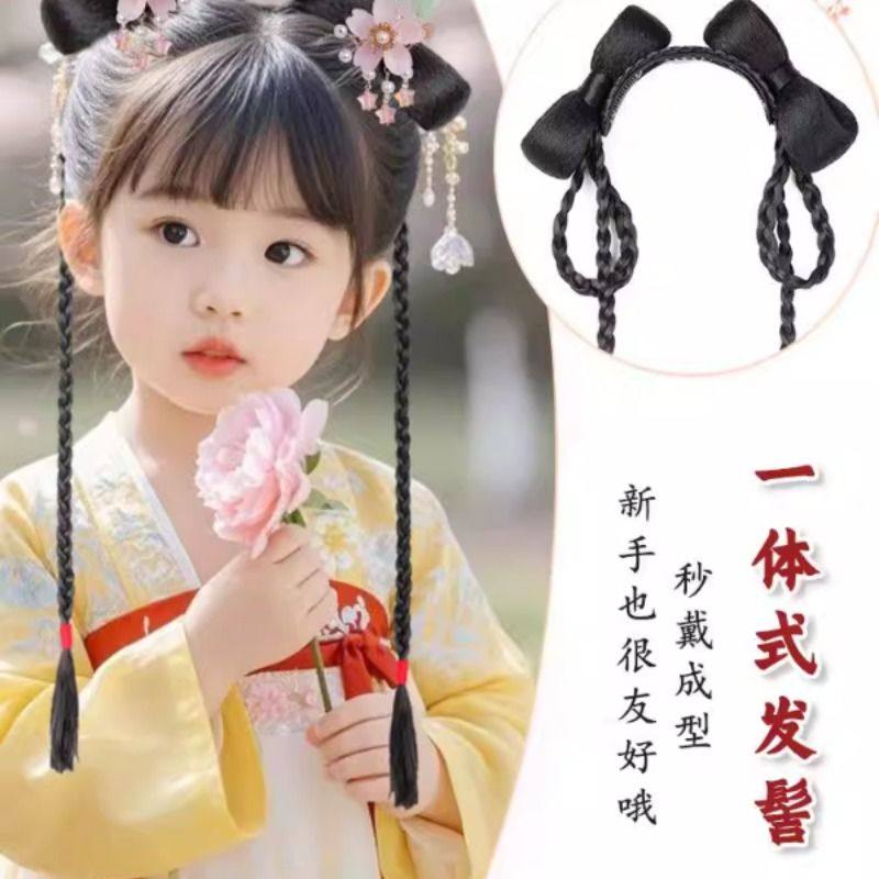 儿童汉服假发一体式古风盘发发髻女童蝴蝶结发包古装头饰垫发造型