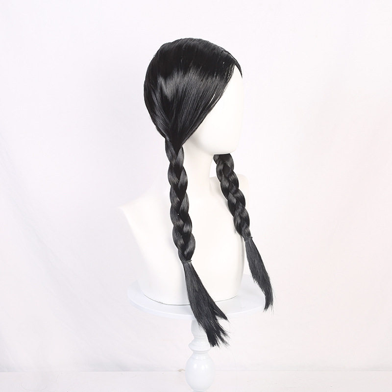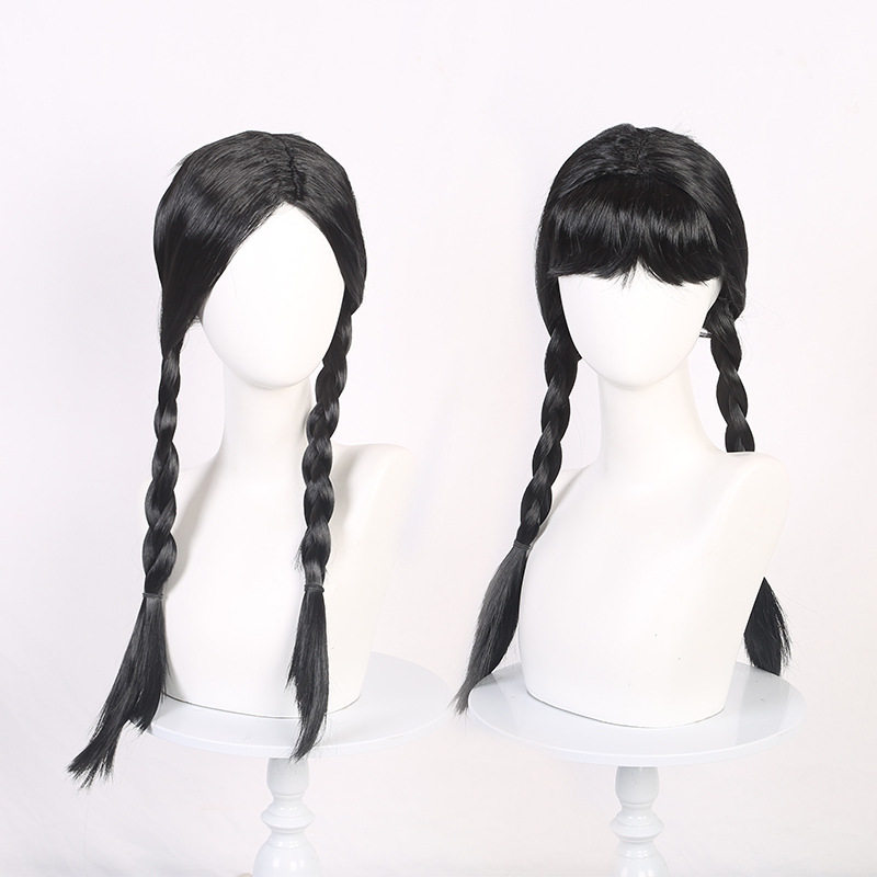 万圣节cos假发黑色麻花辫整顶头套 假发化装舞会装扮双辫子