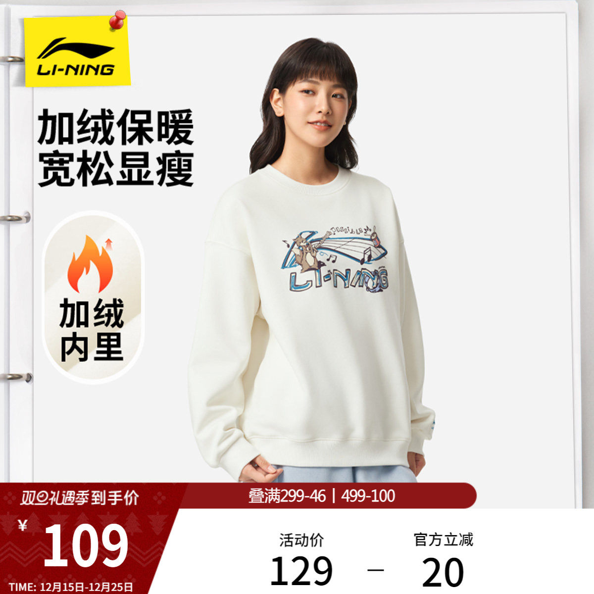 李宁卫衣女款官方冬季新款圆领长袖上衣加绒保暖套头衫运动服女装