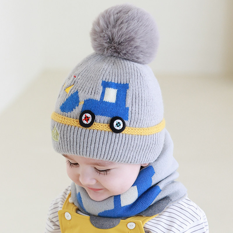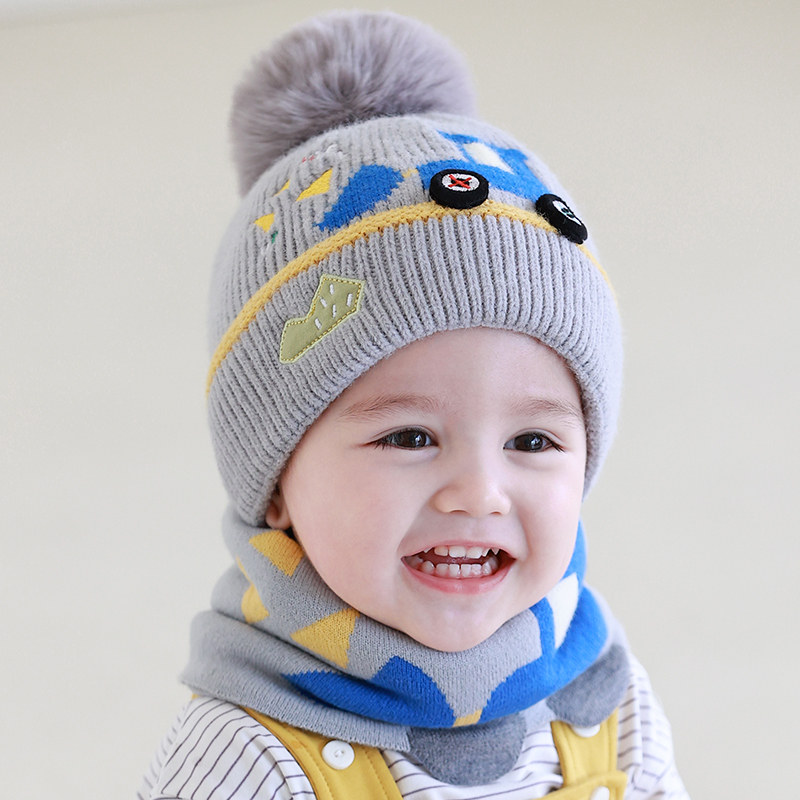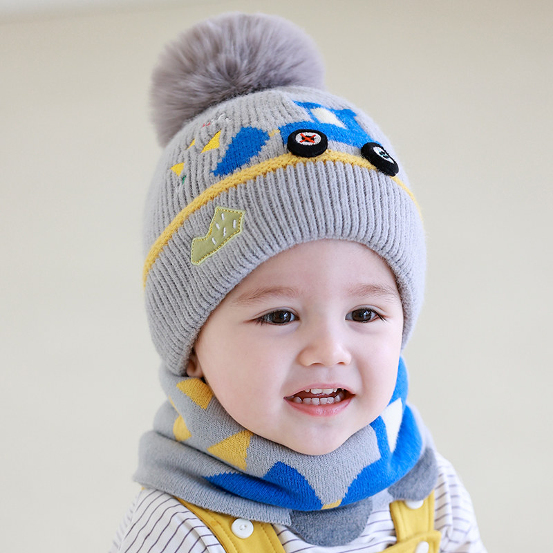 hugz儿童帽子围巾秋冬户外男孩女孩保暖针织毛线帽护耳防风熊仔帽