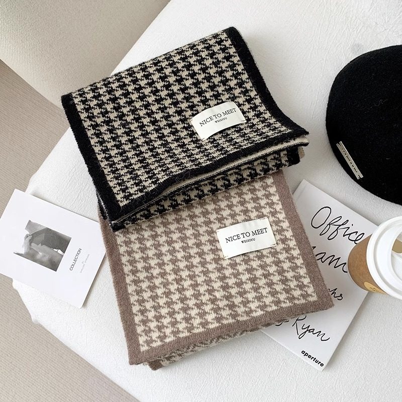 保暖围巾秋冬季新款韩版经典千鸟格双面女时尚针织围脖百搭情侣潮