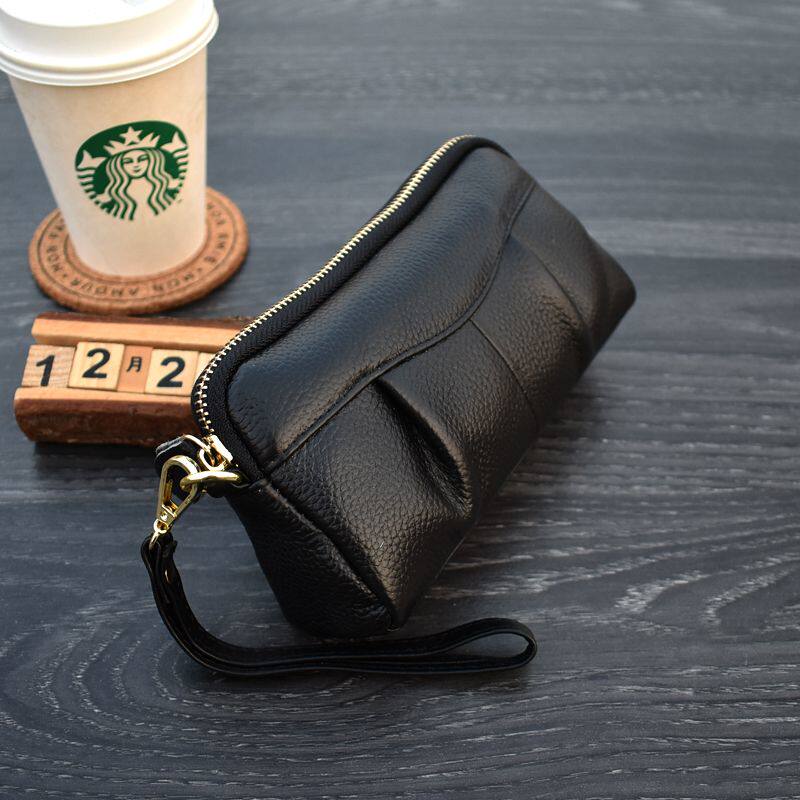 稻草人钱包女真皮黑色钱夹小巧小众高级感零钱包牛皮精致皮夹卡包