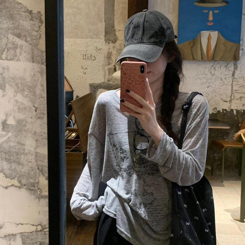 美式复古字母灰色棒球帽女高级感宽檐大头围显脸小百搭鸭舌帽子男