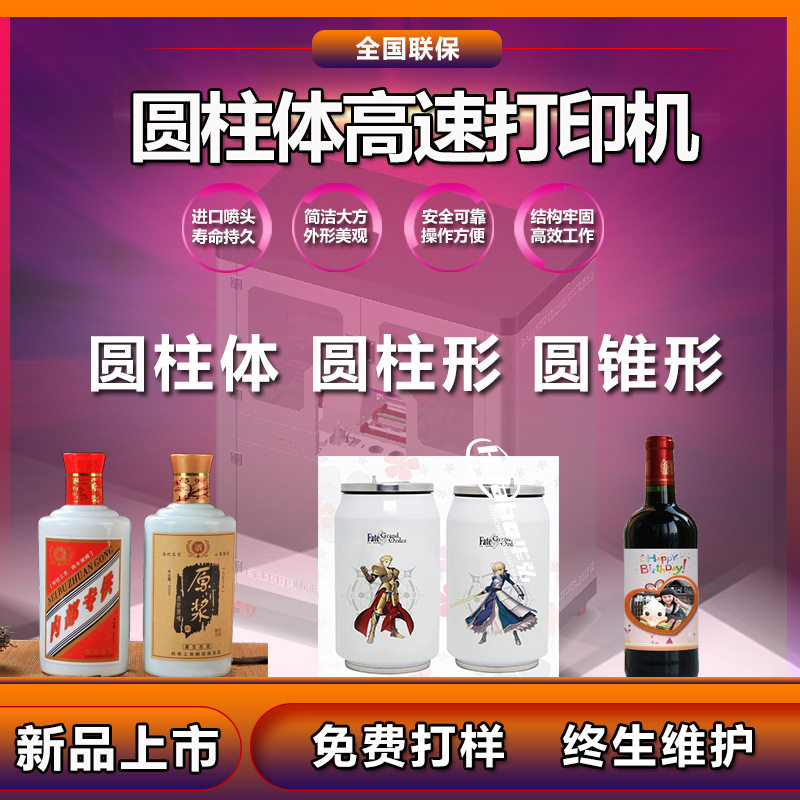 高速圆柱体uv打印机彩色光油浮雕保温杯酒瓶快速印刷智能喷绘机