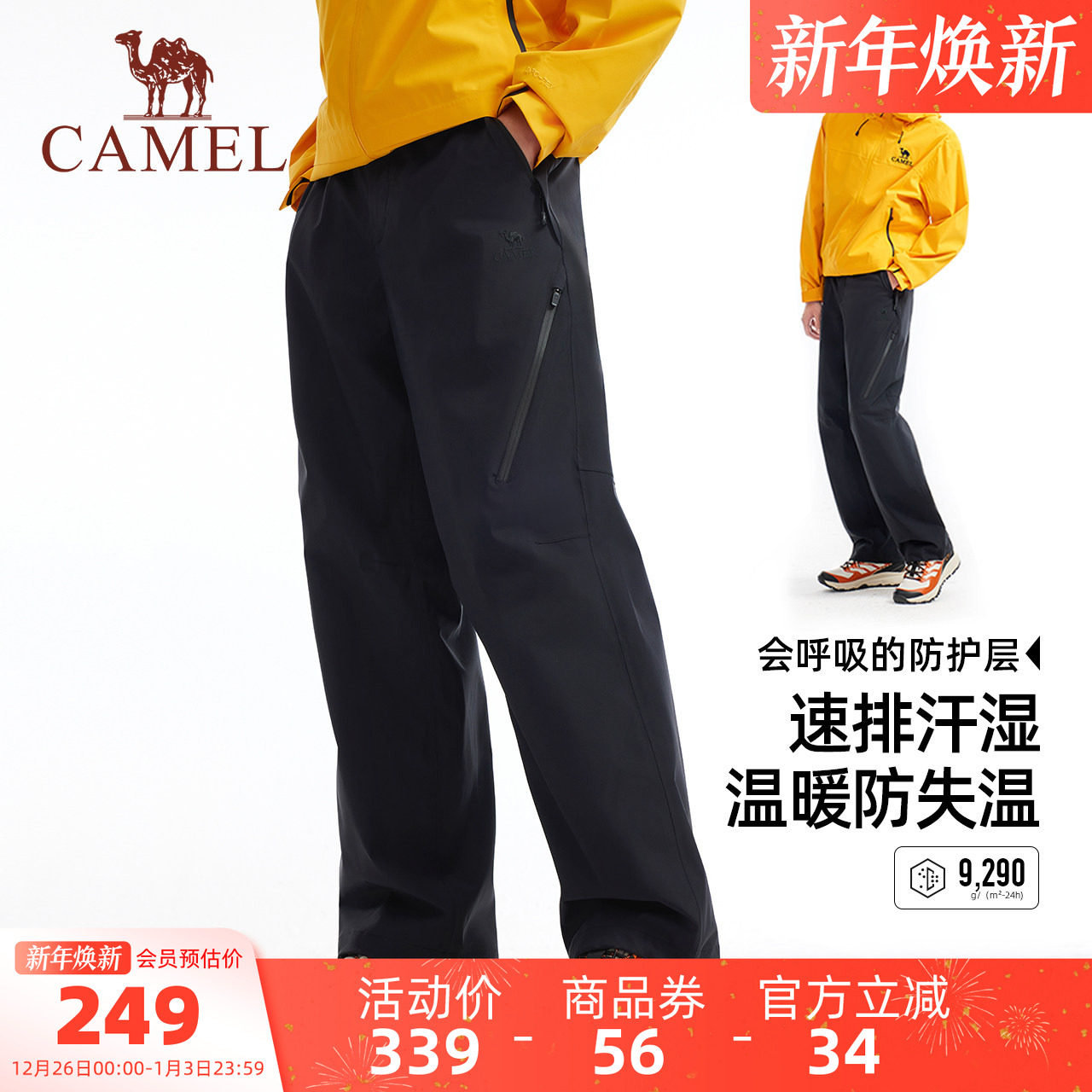 骆驼男装冲锋裤宽松新款户外直筒休闲运动防水保暖硬壳登山工装冬