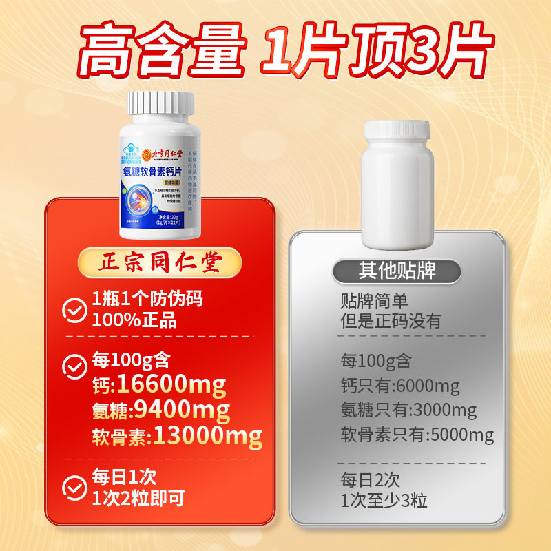 北京同仁堂氨糖软骨素钙片中老年护关节疼痛补硫酸安糖官方旗舰店