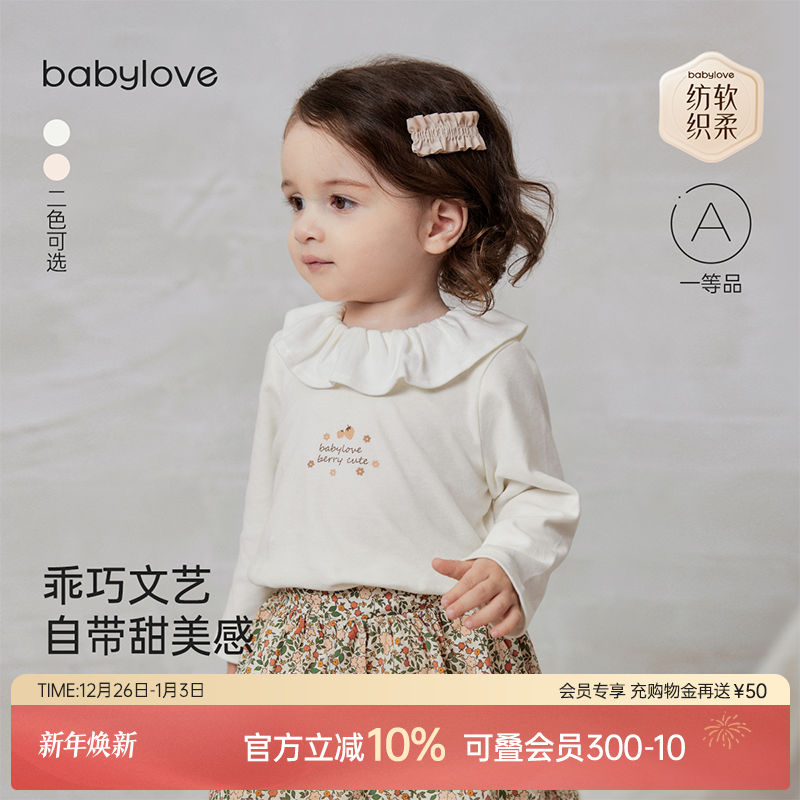 babylove【纺软织柔】女宝宝长袖t恤春秋婴儿纯棉打底衫甜美上衣