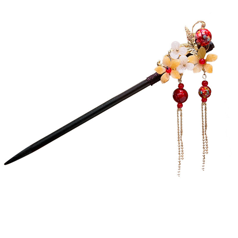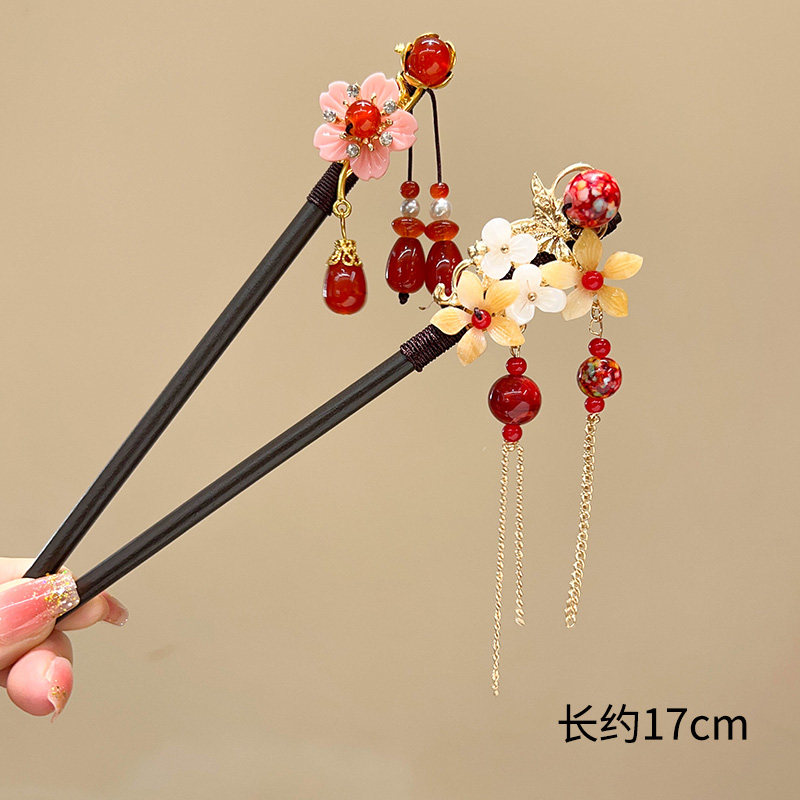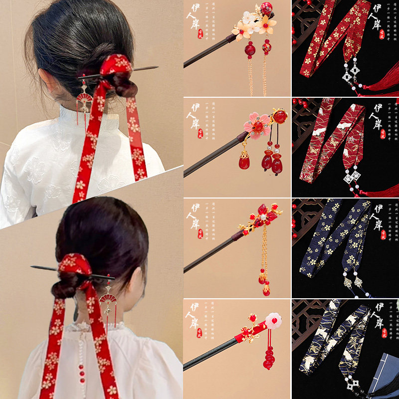 汉服女童发簪新年流苏古风发饰儿童国风马面裙配饰红色簪子女头饰