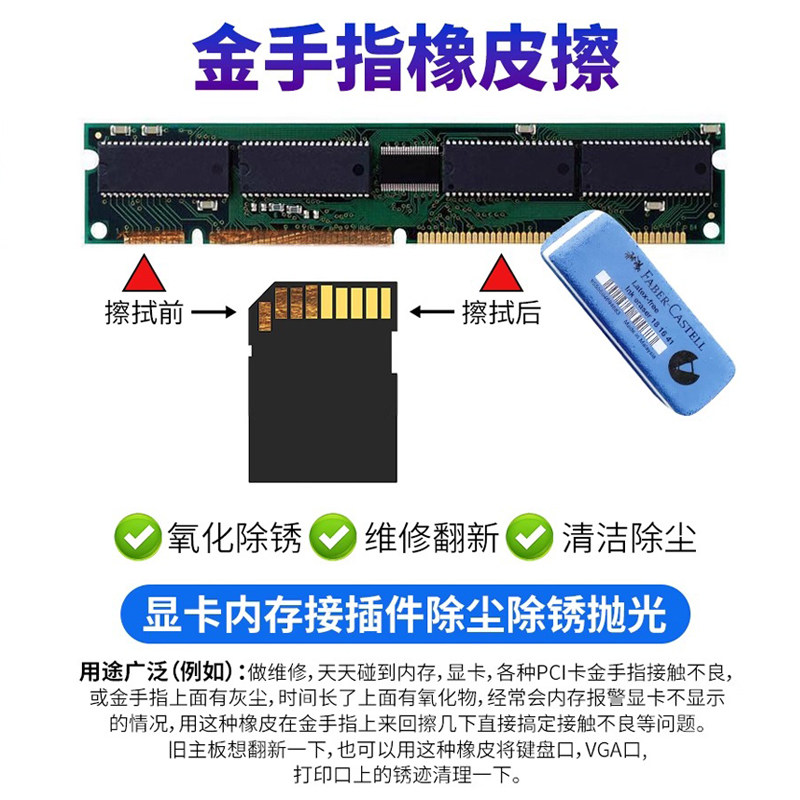 金手指橡皮擦磨砂台式机主板内存条显卡清洁氧化檫不留痕抛光翻新