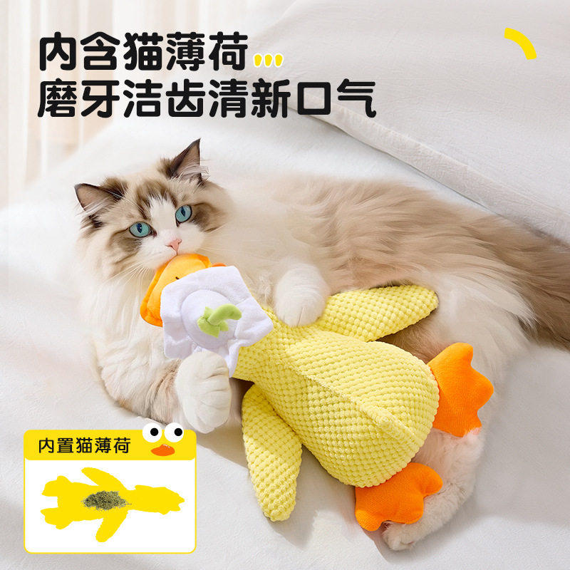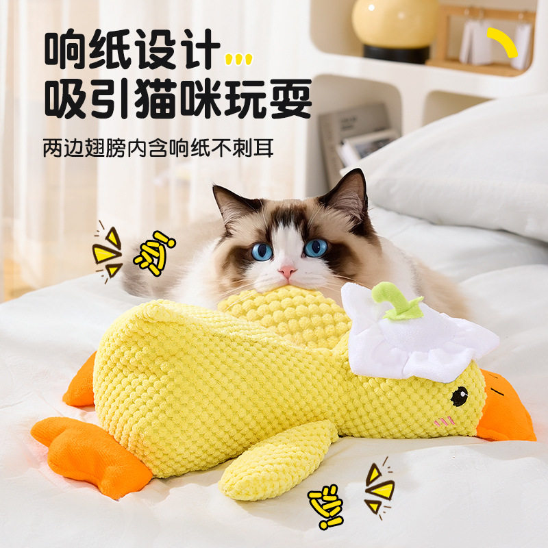 小黄鸭猫玩具毛绒响纸发声玩具猫咪自嗨解闷发声猫薄荷玩具批发跨