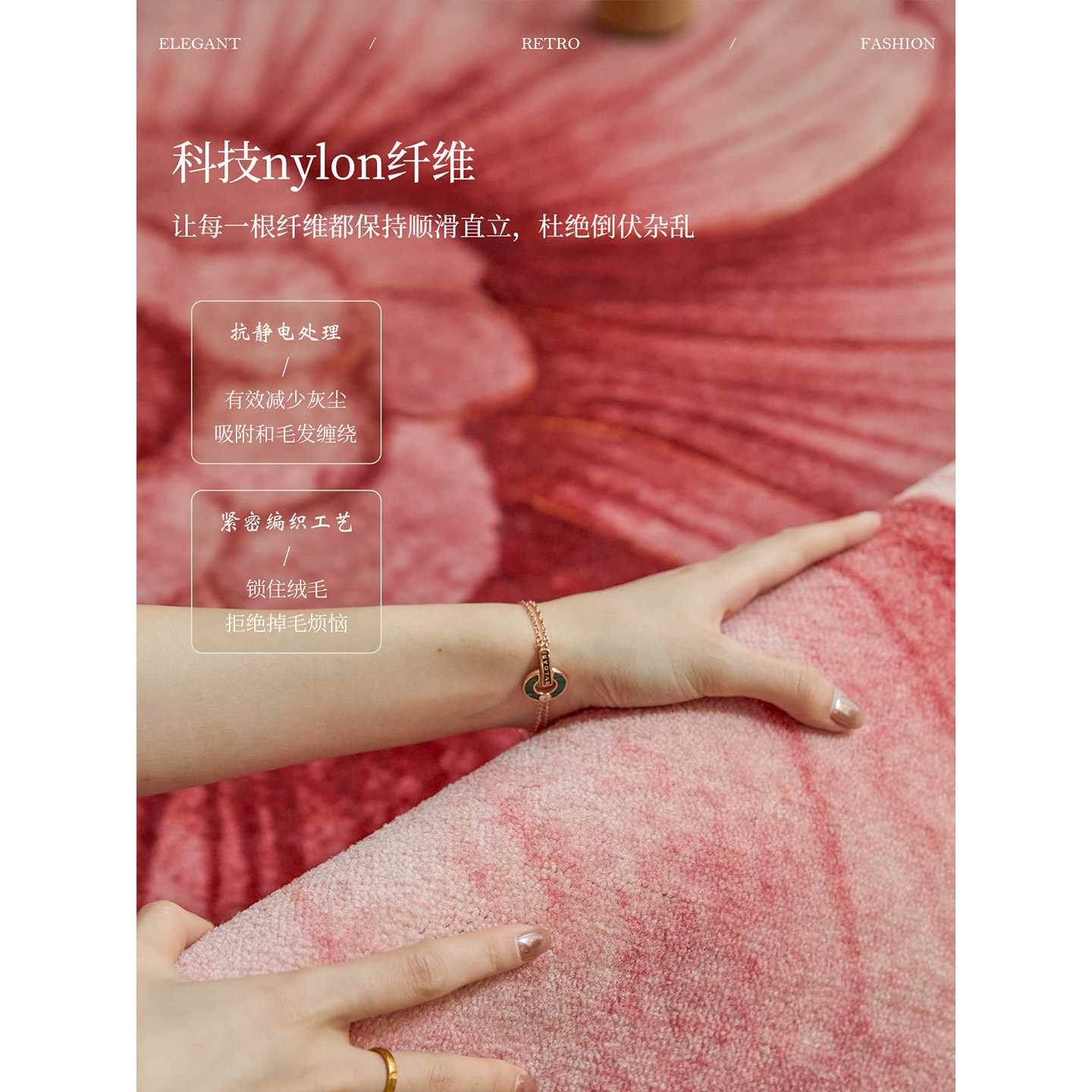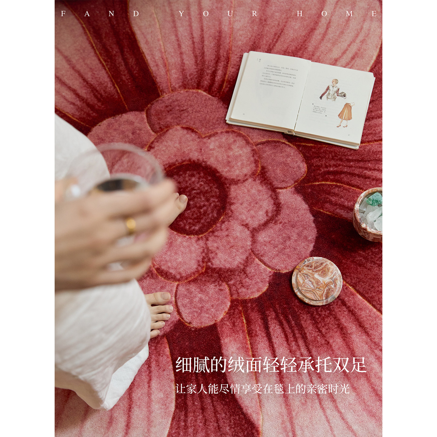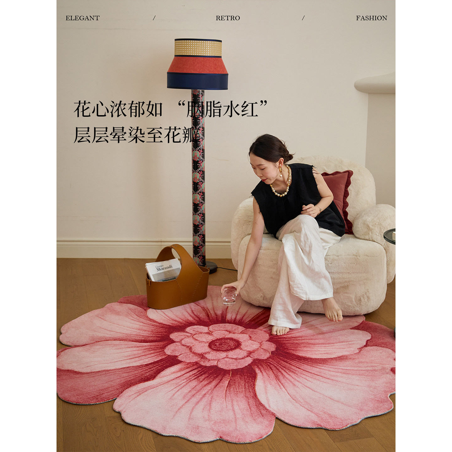 蜡笔派绛芙流韵异形地毯现代中式立体圆形卧室床边毯沙发地垫P