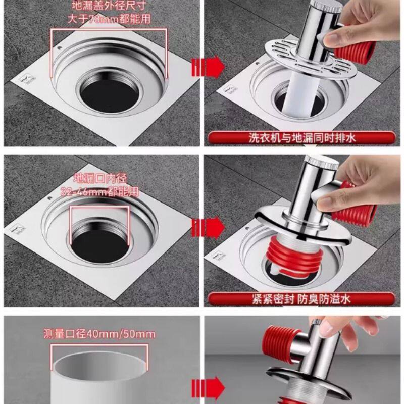 洗衣机地漏专用接头下水排水管道防反溢水二合一三通方形地漏盖子