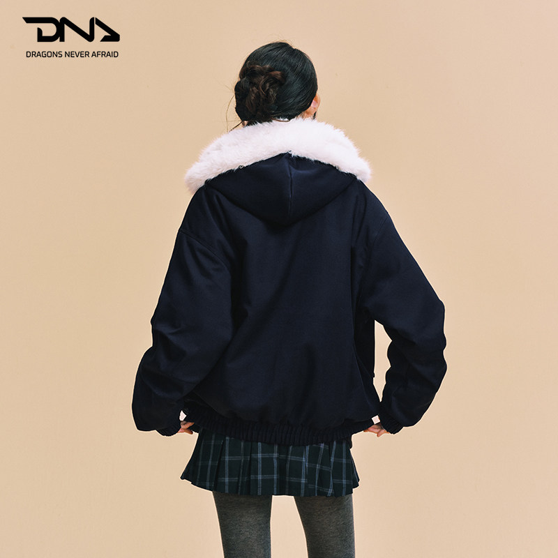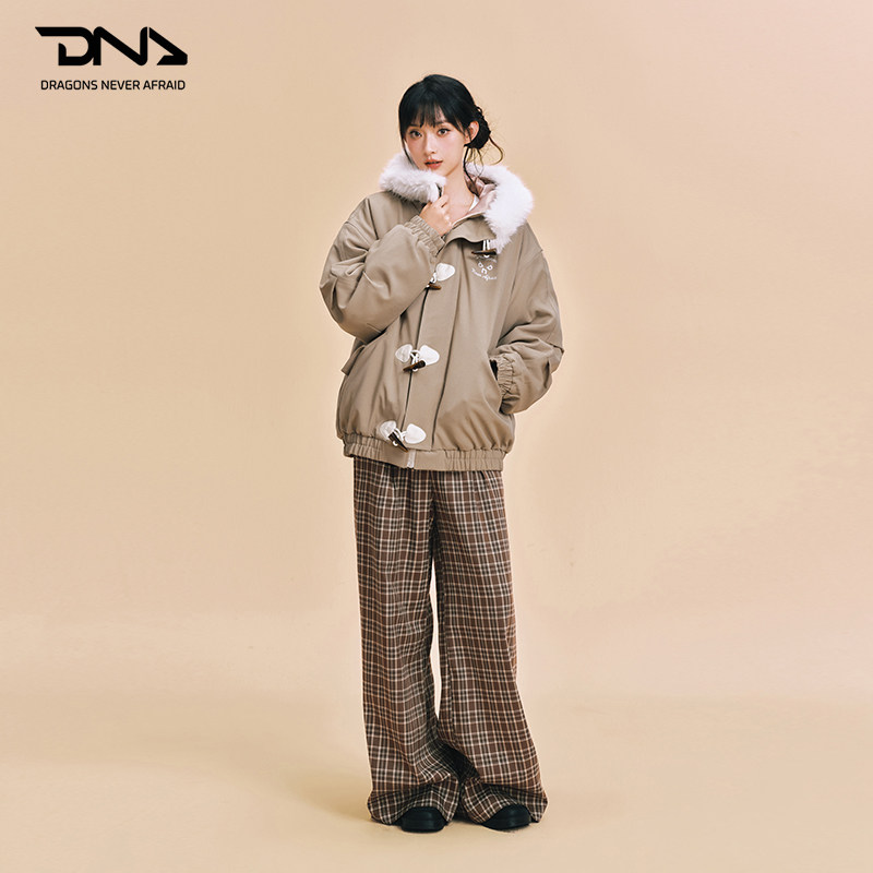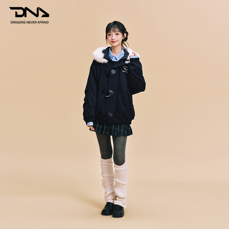 【DNA官方】毛领连帽棉服外套25年秋冬新款牛角扣保暖学院风棉衣