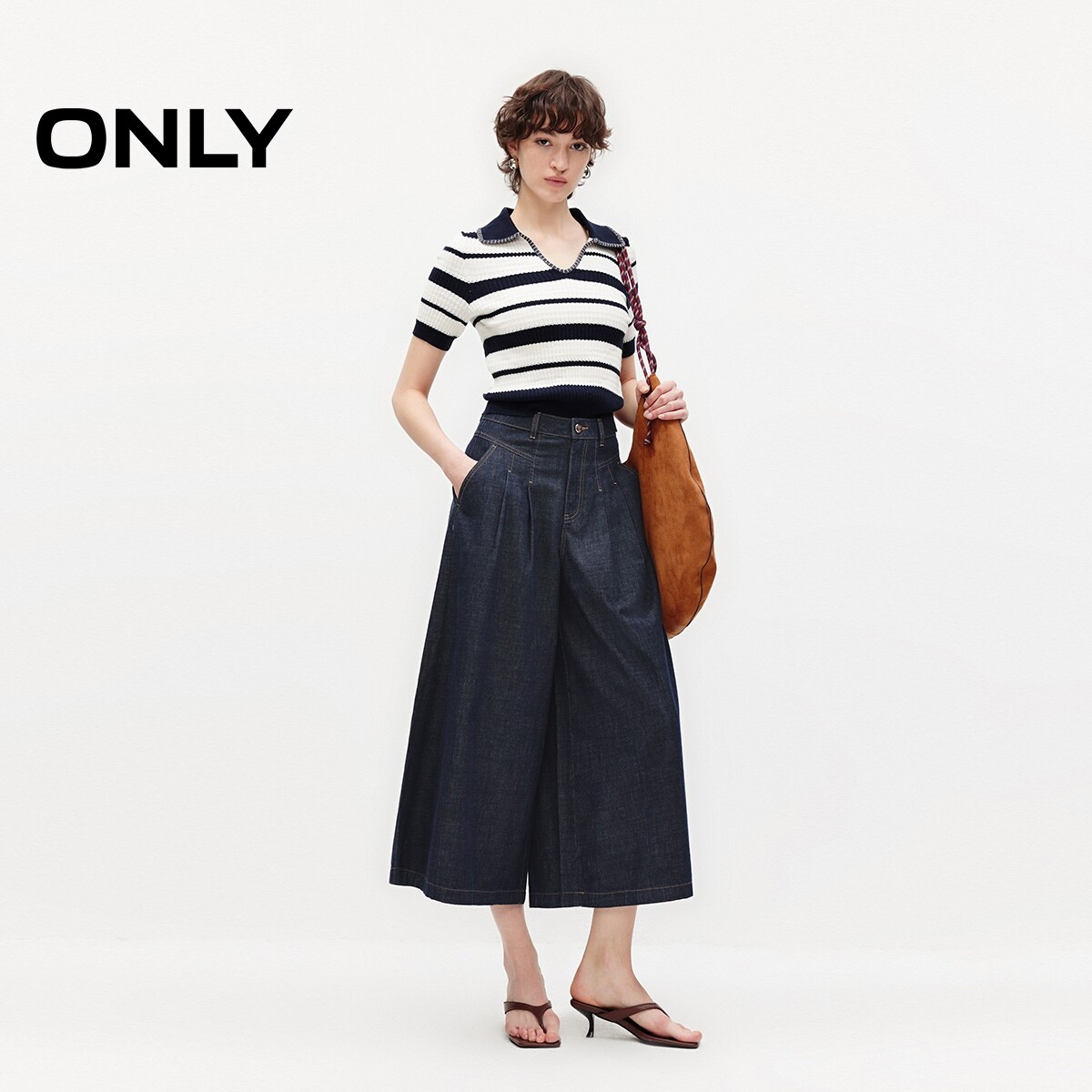 ONLY2026夏季新款含莱赛尔复古水洗高腰短裤七分裤阔腿牛仔裤女