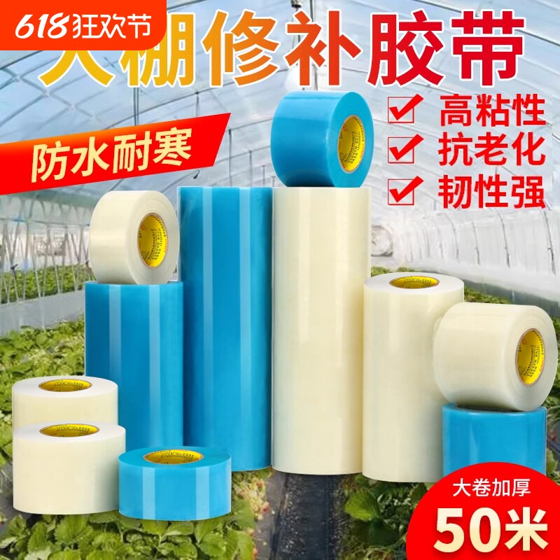 大棚修补专用胶带加厚农用大棚薄膜防水防冻棚膜塑料布补漏粘胶耐温抗老化强力高粘度修复修补胶布大卷50米
