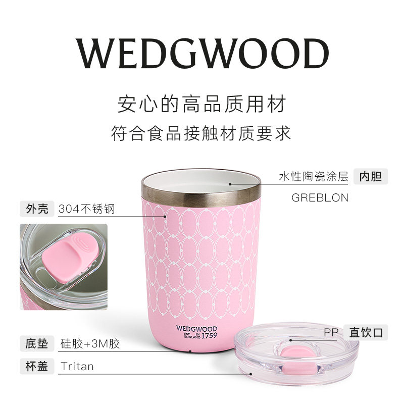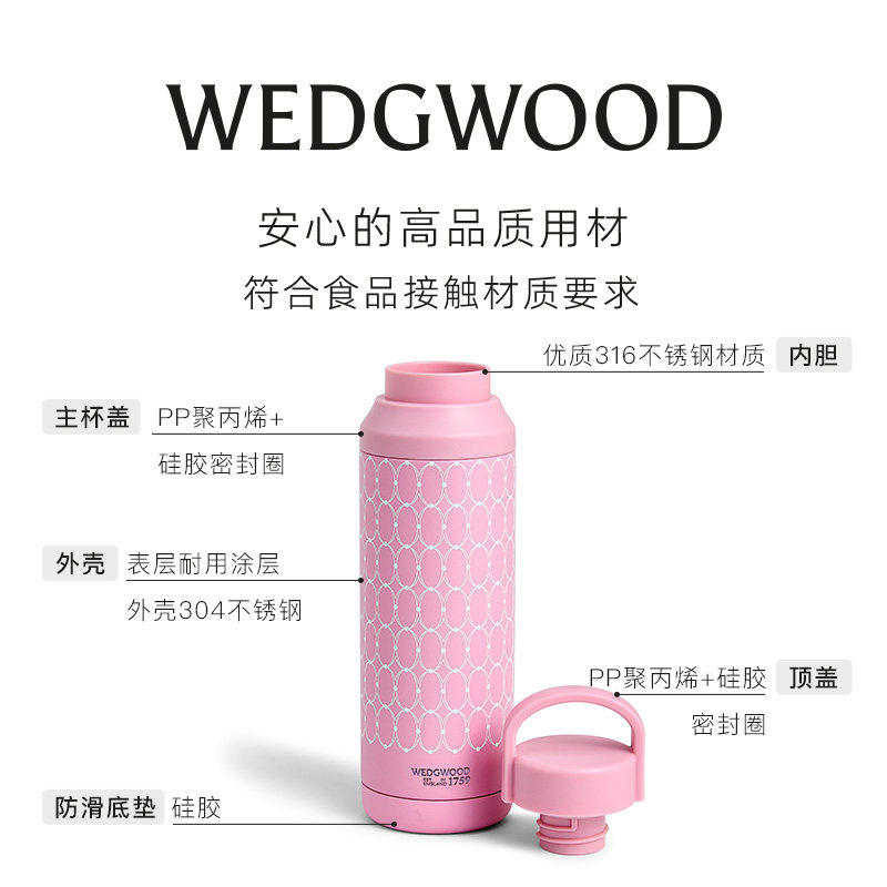 WEDGWOOD威基伍德金粉年华粉色运动保温瓶随行杯咖啡杯送礼