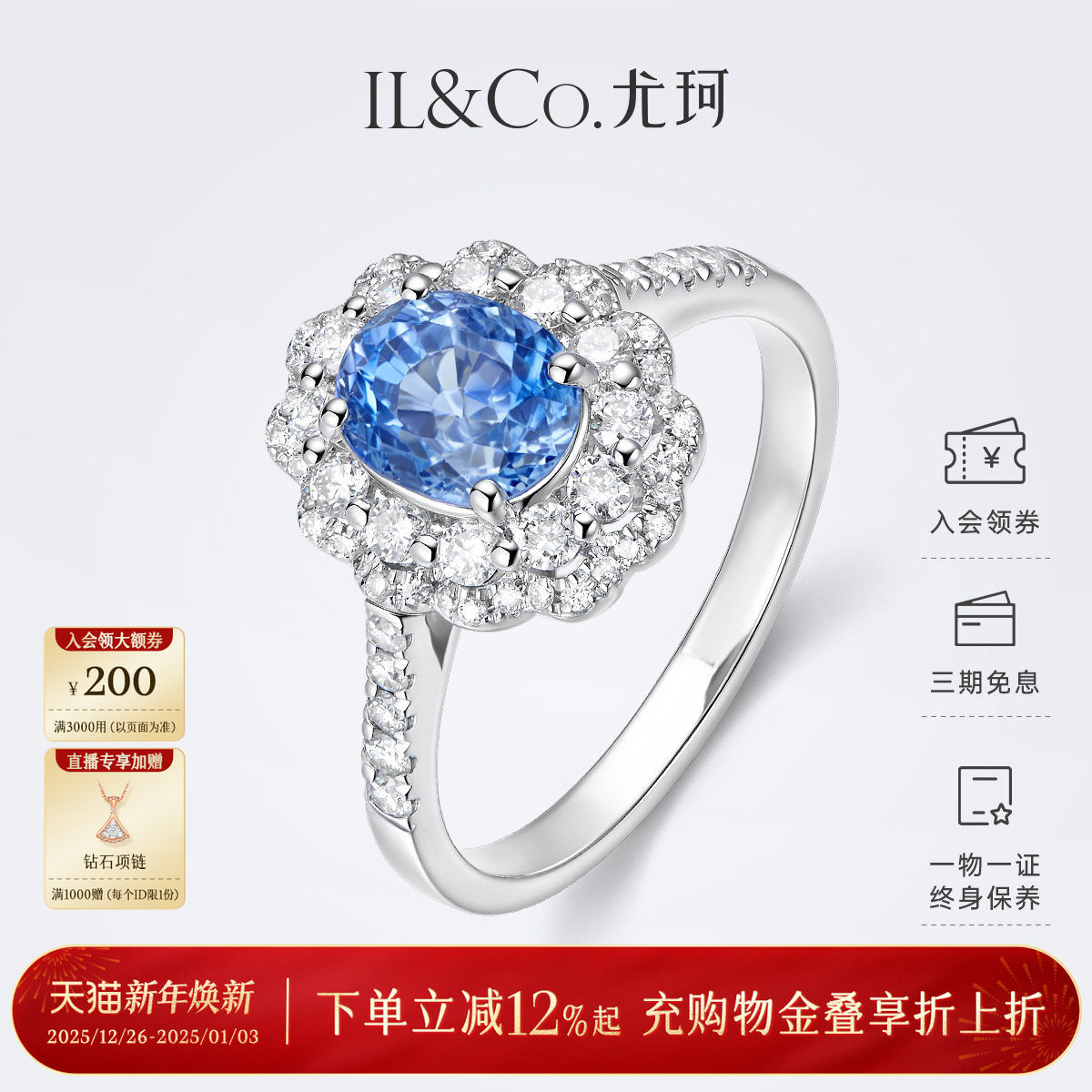 ILCO尤珂「奢黛之花」18K金蓝宝石戒指彩金天然彩宝镶嵌钻石女戒