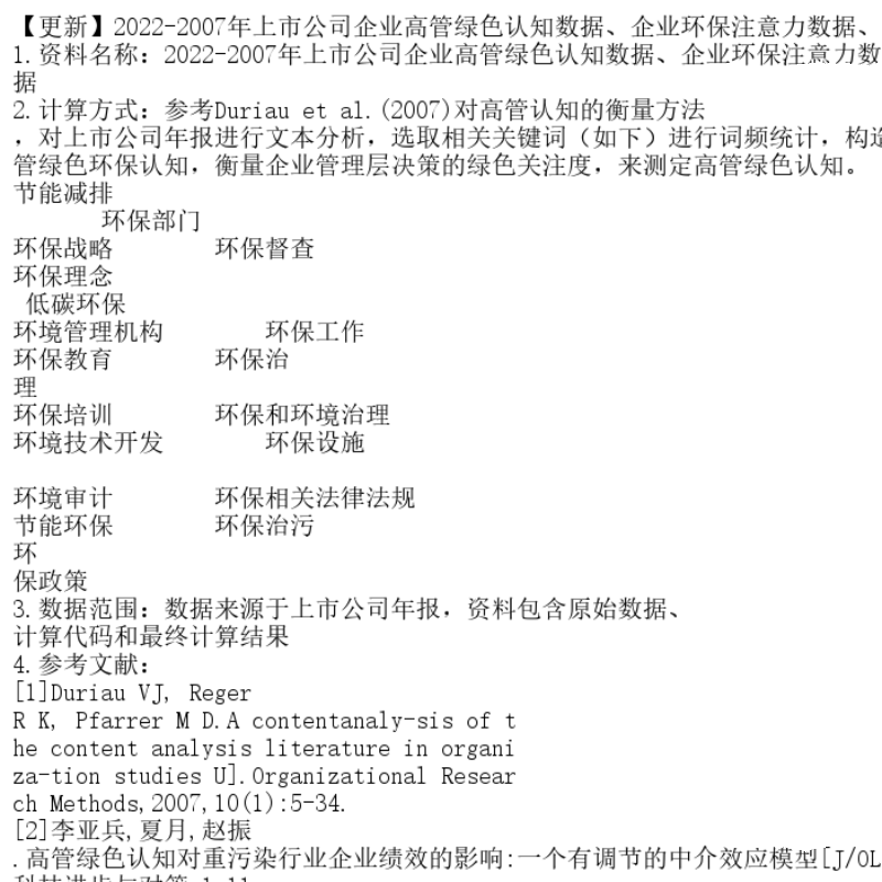 【更新】2022-2007年上市公司企业高管绿色认知数据、企业环保注