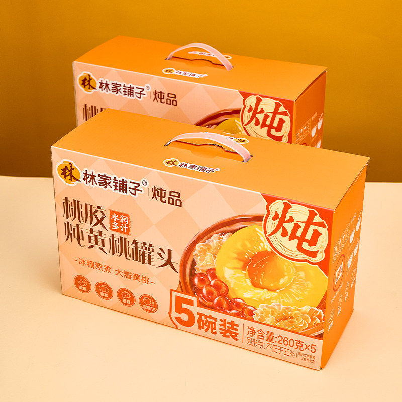 林家铺子食捕头雪莲子桃胶炖桃罐头260g*5年货礼盒装妈妈黄桃