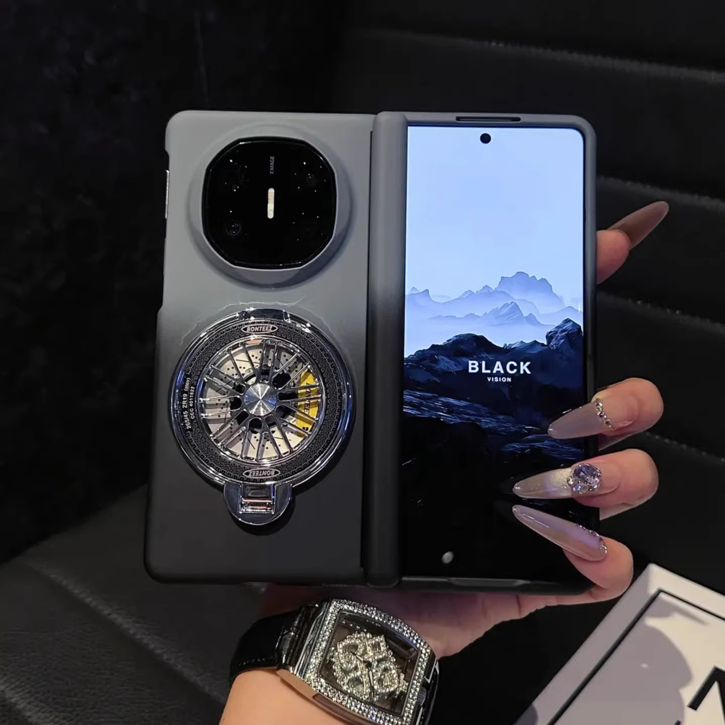 陀螺支架适用华为matex7手机壳vivoxfold5新款肤感磨砂matex6折叠屏中轴全包防摔magicv5/v3高级情侣好看外壳