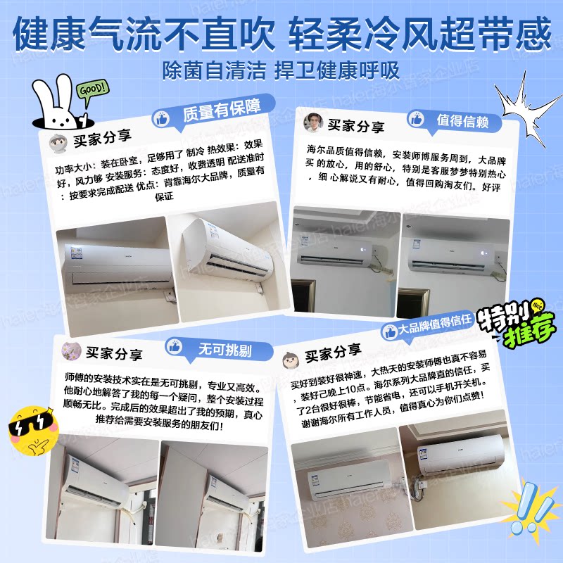 【纯铜管】海尔空调1.5匹1匹家用一级变频冷暖挂机净省电E1旗舰店