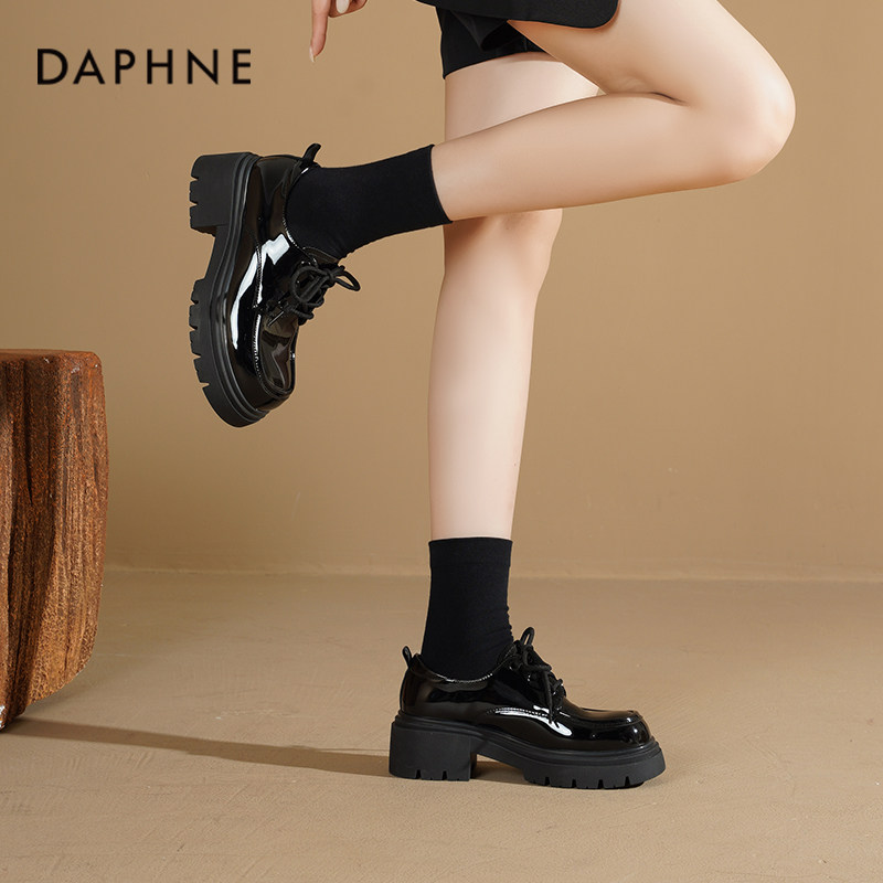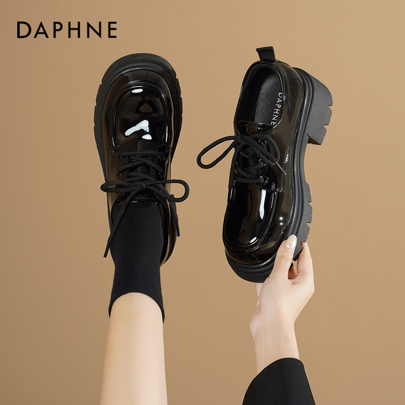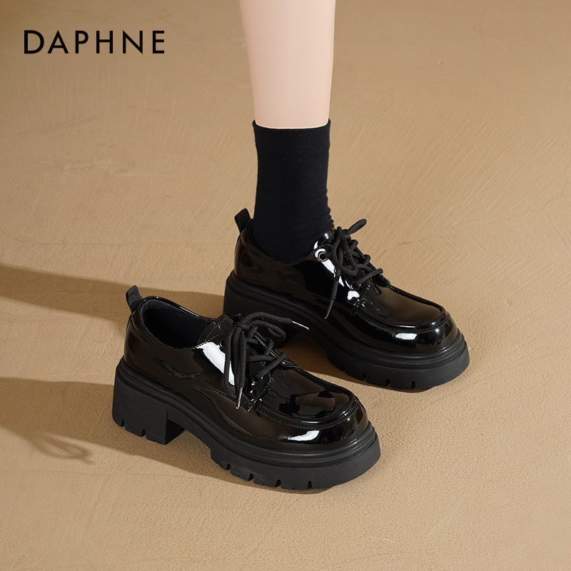 达芙妮厚底乐福鞋2026新款春季英伦风单鞋百搭增高女鞋黑色小皮鞋