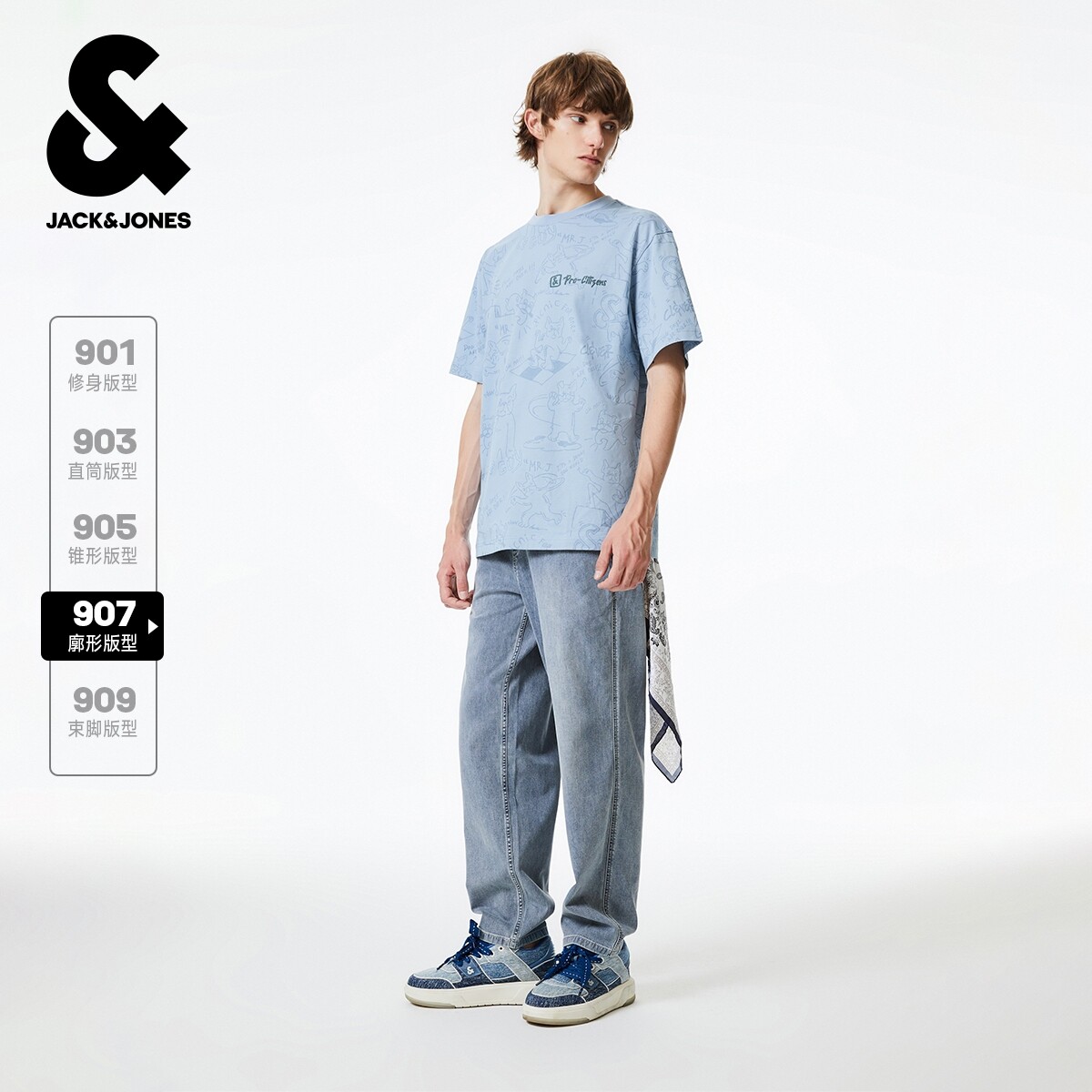 [商场爆款]杰克琼斯男装春季弹力牛仔裤风廓形子225332127